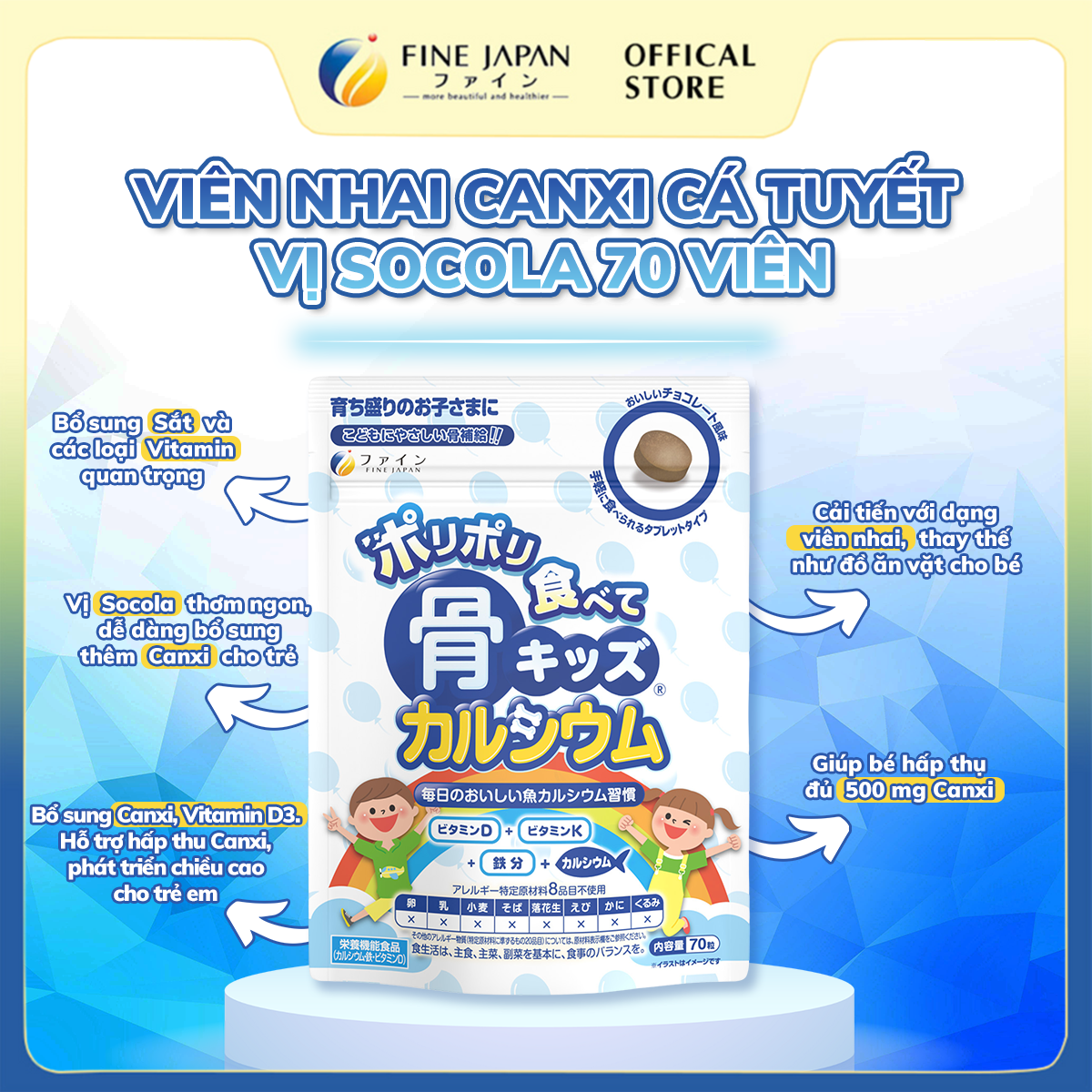 ► Viên nhai Canxi Cá Tuyết Bone’s Calcium Tablets for Kids FINE JAPAN bổ sung Canxi phát triển chiều cao