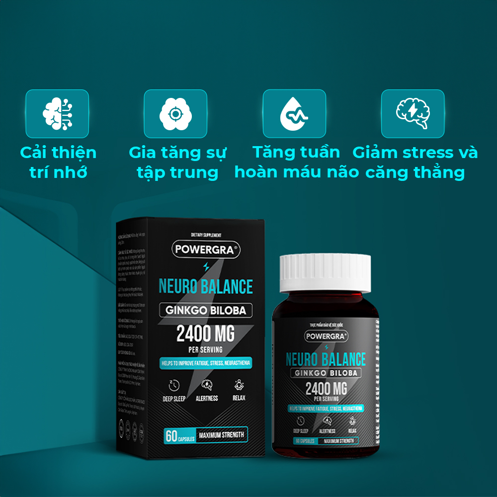 - Thông tin: Viên uống Powergra Neuro Balance với ưu điểm sử dụng thành phần chiết xuất tự nhiên, được nhiều người lựa chọn để hỗ trợ cải thiện trí nhớ và tăng cường sức