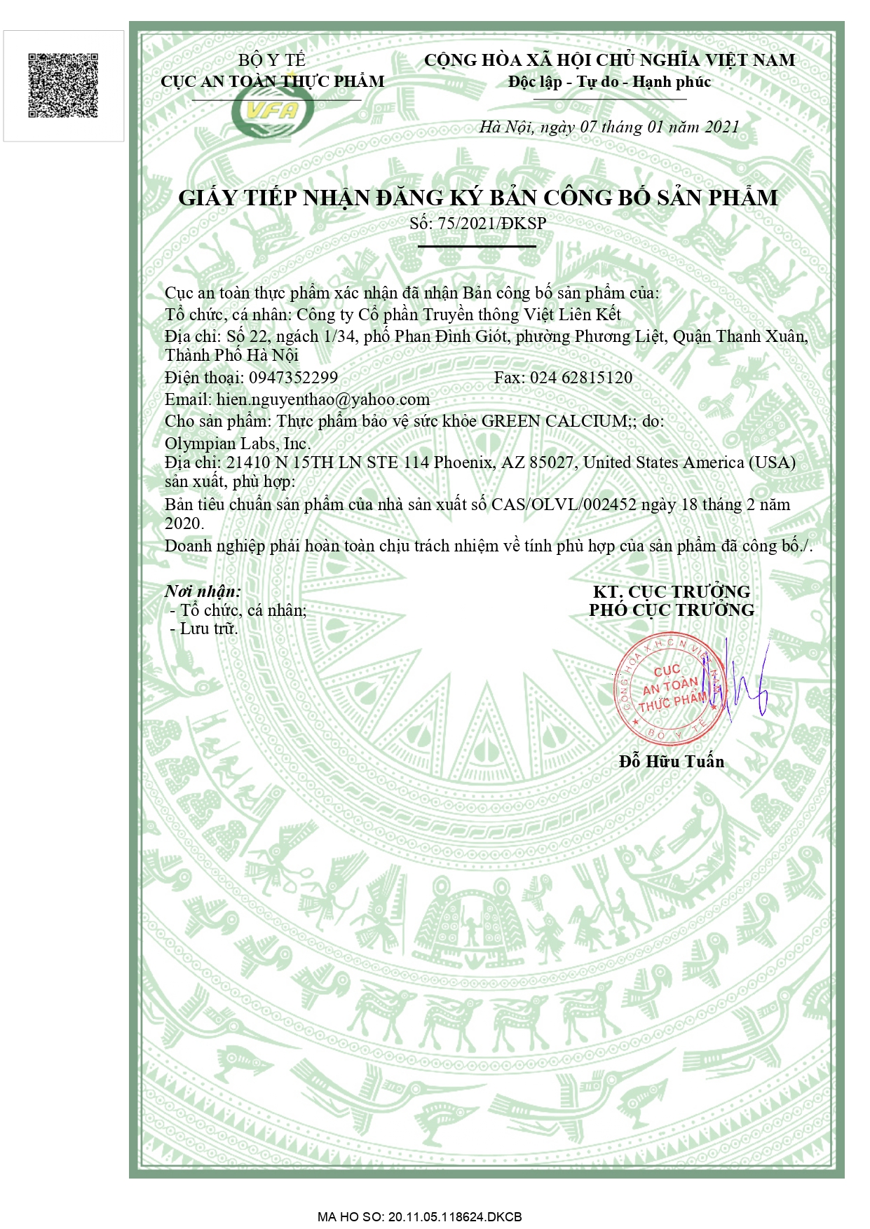 - Xuất xứ: Mỹ THÀNH PHẦN VIÊN CANXI HỮU CƠ: có trong 02 viên: