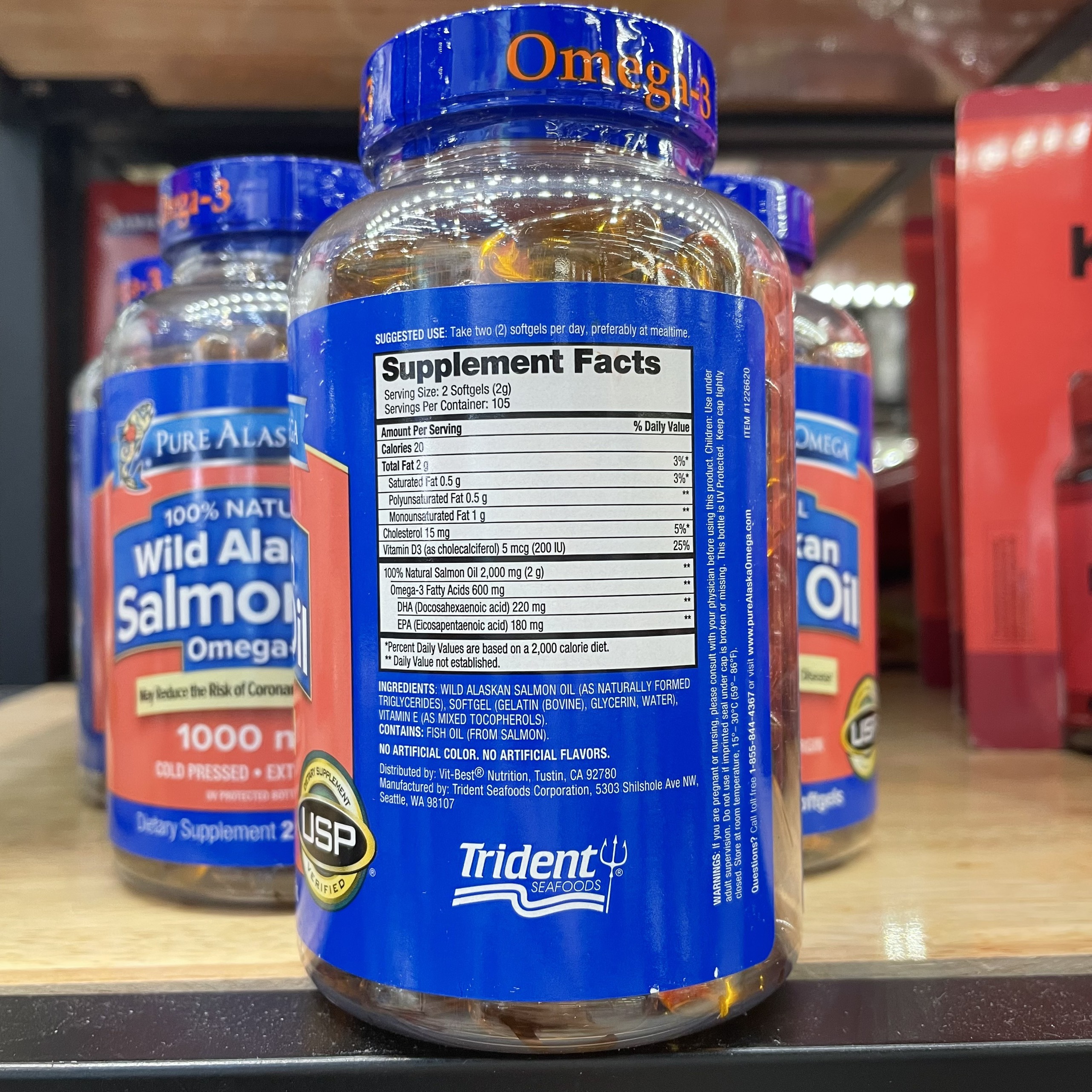 Viên Uống Bổ Sung Sáng Mắt , Khỏe Xương, Tăng Hệ Miễn Dịch Dầu Cá Dầu Cá hồi Pure Alaska Omega-3 Wild Salmon Oil 1000mg - Hàng nhập Mỹ