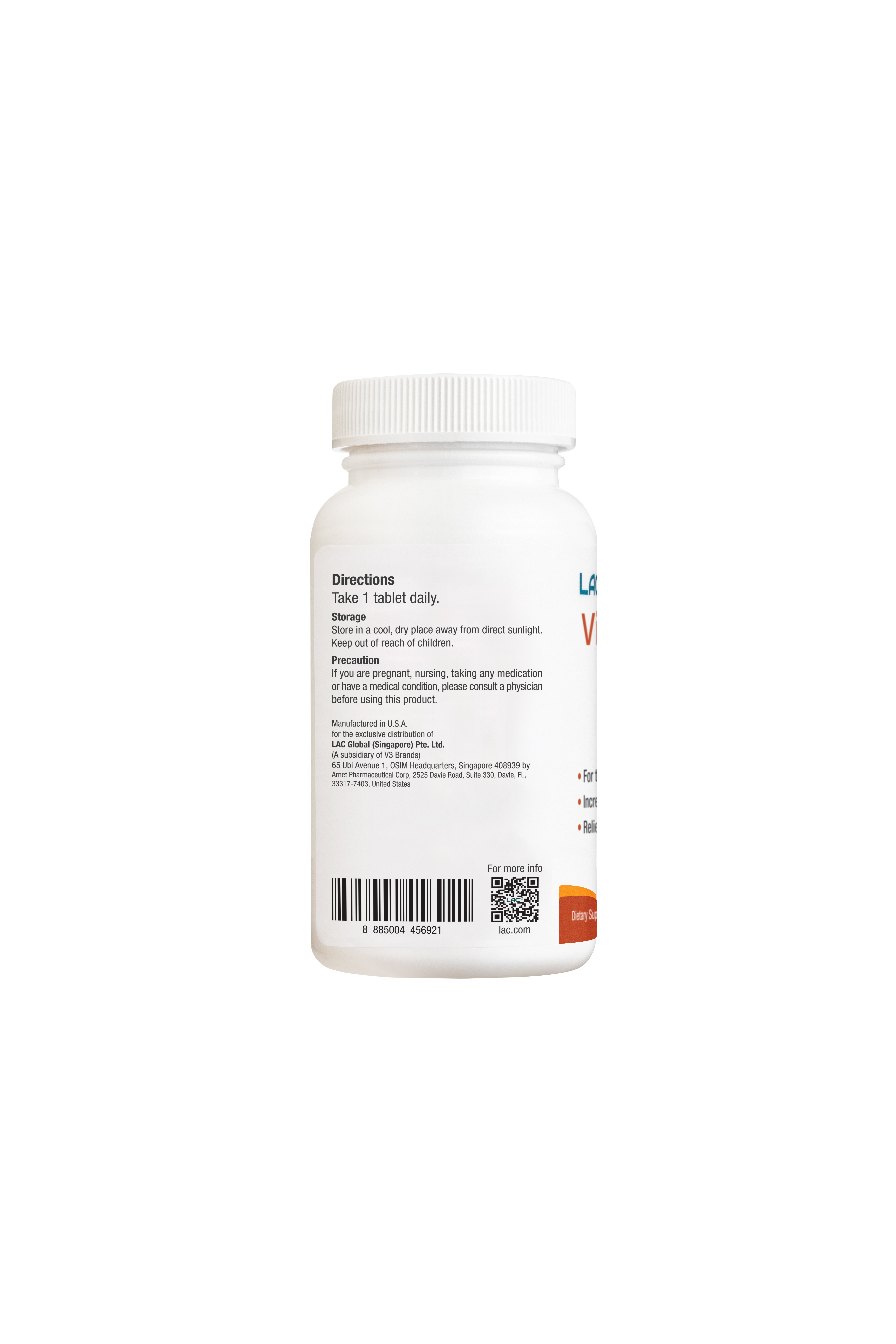 • Tăng cường sức khỏe tim mạch với mức homocysteine (là một chất tồn tại tự nhiên trong cơ thể, nhưng khi có chỉ số cao, có thể gây ra nhiều vấn đề về sức khỏe tim mạch) ổn định Thành phần Vitamin B-12 (dưới dạng Cyanocobalamin) 600 mcg HDSD Uống 1 viên mỗi ngày THÔNG TIN THƯƠNG HIỆU LAC, viết tắt của cụm từ Leader in Antioxidative Control, là sự kết hợp giữa trí tuệ phương Đông và công nghệ phương Tây nhằm cung cấp những giải pháp về sức khỏe và thể chất tuyệt vời cho người tiêu dùng. LAC Global, có trụ sở chính tại Singapore, có mặt 25 năm trên thị trường, được thành lập từ năm 1997, là nhà bán lẻ chuyên biệt lớn nhất châu Á về thực phẩm bổ sung dinh dưỡng, vitamin, khoáng chất, thảo dược và các chất bổ sung đặc biệt khác trong lĩnh vực Chống lão hóa và Làm đẹp, Miễn dịch, Quản lý Cân nặng, Dinh dưỡng Thể thao và Năng lượng.