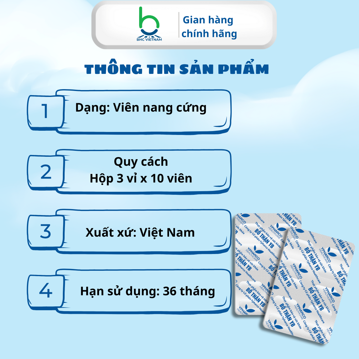 Viên Uống Bổ Thận YB – Hỗ Trợ Cải Thiện Sinh Lý Nam Giới, Bổ Thận Tráng Dương Tên sản phẩm: Viên uống Bổ Thận YB Dạng bào chế: Viên nang cứng Quy cách đóng