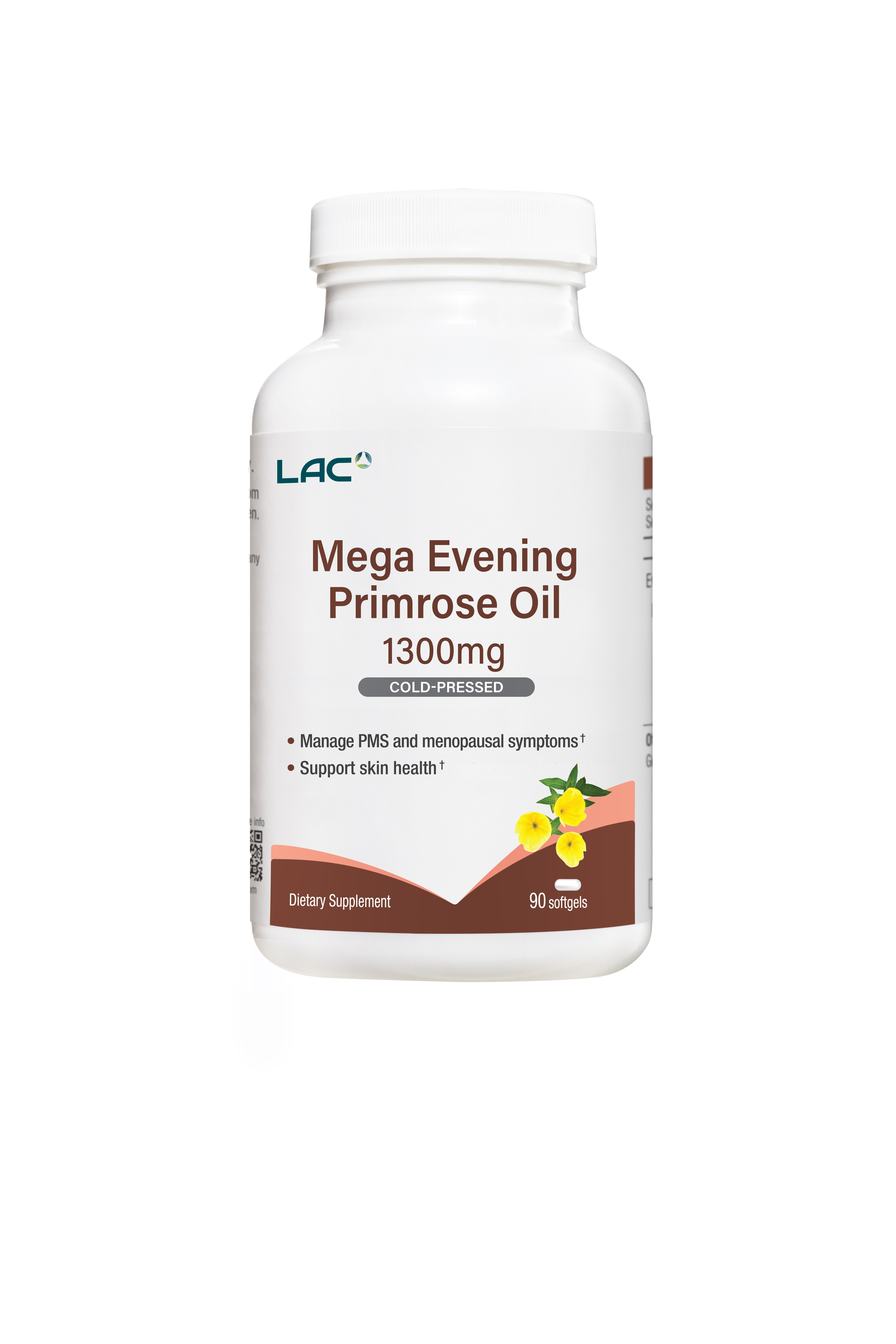 VIÊN UỐNG DẦU HOA ANH THẢO HỖ TRỢ CÂN BẰNG NỘI TIẾT TỐ LAC MEGA EVENING PRIMROSE OIL 1300MG (90 VIÊN) thông qua quá trình ép lạnh tỉ mỉ để giữ nguyên giá trị dinh dưỡng, cung cấp axit béo omega-6, axit linoleic (LA) và axit gamma-linolenic (GLA), giúp giảm nhẹ các triệu chứng tiền kinh nguyệt (PMS) và mãn kinh ở phụ nữ như thay đổi tâm trạng, căng tức ngực, co thắt bụng, nóng bừng, đổ mồ hôi đêm và các khó chịu khác. Ngoài ra, còn có tác dụng hỗ trợ khớp, cung cấp độ ẩm cho da và giảm các tình trạng da thông thường khác.