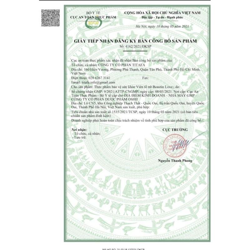 TPBVSK - Viên Tố Nữ BEAUTIN LOVE Phụ nữ tiền mãn kinh, mãn kinh, suy giảm nội tiết tố nữ với các dấu hiệu: đau đầu, mất ngủ, bốc hỏa, dễ cáu gắt. * Người bị nám, sạm da, người bị lão hóa da, nhăn da, người cần chăm sóc làm đẹp da. Phụ nữ tiền mãn kinh, mãn kinh, suy giảm nội tiết tố nữ với các dấu hiệu: đau đầu, mất ngủ, bốc hỏa, dễ cáu gắt. Người bị nám, sạm da, người bị lão hóa da, nhăn da, người cần chăm sóc làm đẹp da. Thành phần Chiết xuất Sâm tố nữ mg (Pueraria mirifica extract) Pregnenolone …….… 15 mg (Chiết xuất từ Củ mài đắng) Cao Thục địa ………….….20 mg Cao Đương quy ………….….20 mg Cao Hồng hoa ………….….20 mg L-Glutathione 40% ………………140 mg Collagen Peptide (Cá Tuyết) mg L-C mg Bột Nhau Thai Cừu…… mg Chiết xuất Lô hội…… 30 mg Chiết xuất Dương xỉ…… 30 mg (DL-alpha-tocopheryl acetat) Phụ liệu: Dầu nành, Sáp ong trắng, Glycerin, Titan Dioxyd, Vanillin, Sorbitol 70%, Gelatin vừa đủ 01 viên. Đối tượng sử dụng Người bị nám, sạm da, người bị lão hóa da, nhăn da, người cần chăm sóc làm đẹp da. Phụ nữ tiền mãn kinh, mãn kinh, suy giảm nội tiết tố nữ với các dấu hiệu: đau đầu, mất ngủ, bốc hỏa, dễ cáu gắt. Cách dùng Uống 02 viên/lần/ngày. Uống với nhiều nước để đạt hiệu quả. Chú ý: