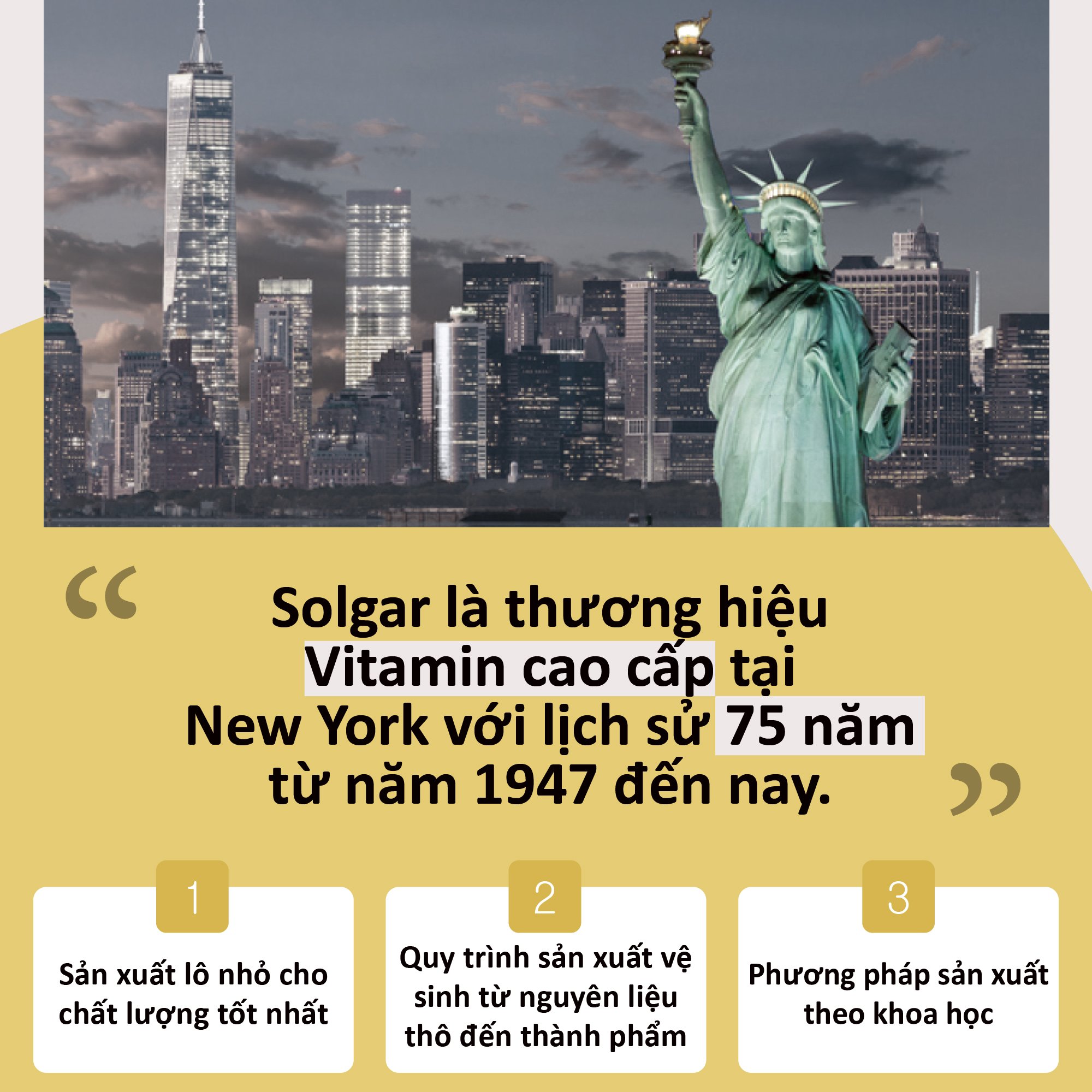 TIÊU CHUẨN VÀNG SOLGARNguyên liệu tuyển chọn Chỉ những nguyên liệu đạt chất lượng tốt nhất mới được Solgar sử dụng cho quá trình sản xuất. Tất cả nguyên liệu trước khi đưa vào cơ sở của Solgar đều phải trải qua bước kiểm tra nghiêm ngặt để đảm bảo chất lượng cao nhất. Nếu các nguyên liệu không đáp ứng được các yêu cầu của Solgar, Solgar sẽ từ chối và trả lại cho nhà cung cấp. Solgar có Phòng Kiểm tra chất lượng tại chỗ nhằm đảm bảo tất cả sản phẩm đều đạt Tiêu Chuẩn Vàng về chất lượng trước khi phân phối đến khách hàng. Sản phẩm được nghiên cứu trên cơ sở khoa họcSolgar được biết đến trên toàn thế giới bởi việc sản xuất những sản phẩm tiên tiến, có hiệu quả và dựa trên cơ sở khoa học. Tất cả sản phẩm của Solgar đều là kết quả của quá trình nghiên cứu kỹ lưỡng của các chuyên gia trong Bộ phận Nghiên cứu và Phát triển (R&D). Hệ thống dây chuyền sản xuất hiện đạiHệ thống dây chuyền sản xuất của Solgar tiên tiến về cả thiết kế và chức năng. Tất cả máy móc, quy trình sản xuất, quản lý chất lượng và môi trường đều tuân thủ nghiêm ngặt theo Tiêu chuẩn thực hành sản xuất tốt (GMPs) và các tiêu chuẩn về sản xuất dược phẩm. Solgar có Phòng Kiểm tra chất lượng tại chỗ, quy chuẩn về phân phối nên Solgar có thể đảm bảo chất lượng của sản phẩm trong suốt quá trình. Chất lượng được kiểm soát theo Tiêu Chuẩn Vàng Solgar (Gold StandardTM)Tất cả sản phẩm của Solgar đều phải đạt được Tiêu Chuẩn Vàng Solgar, đây là tiêu chuẩn thậm chí còn nghiêm ngặt hơn quy định của FDA. Chúng tôi có một hệ thống kiểm soát chất lượng nghiêm ngặt tại chỗ để thử nghiệm sản phẩm ở nhiều giai đoạn, từ nguyên liệu đến thành phẩm. Chỉ những sản phẩm đạt chất lượng theo Tiêu Chuẩn Vàng Solgar mới phân phối đến khách hàng. Hệ thống lọc nước USPSolgar đã đầu tư hơn 1 triệu đô la Mỹ vào hệ thống lọc nước và thẩm thấu hiện đại nhất hiện nay cho nhà máy sản xuất của mình, hệ thống USP. Hệ thống này thậm chí không được yêu cầu bởi Tiêu chuẩn thực hành sản xuất tốt (GMPs) nhưng theo Tiêu Chuẩn Vàng Solgar về chất lượng, Solgar phải trang bị những gì tốt nhất có thể. Hệ thống lọc không khí HEPAKhông khí lưu thông trong các cơ sở sản xuất của Solgar đều đi qua các bộ lọc không khí của HEPA, bộ lọc này loại bỏ đến 99,9% bụi trong không khí. Tất cả các mẫu không khí và nước đều được kiểm tra thường xuyên tại các phòng thí nghiệm của Solgar. Đảm bảo vệ sinhSolgar sử dụng các chất tẩy rửa dành cho thực phẩm để làm vệ sinh các thiết bị sản xuất. Chúng tôi tháo rời và làm sạch tất cả máy móc, thiết bị sau mỗi lần sử dụng. Trong một số trường hợp, các thiết bị được chia thành hàng trăm mảnh và có thể mất đến 8 giờ để làm sạch và lắp ráp lại. Tường, sản nhà và các bề mặt khác cũng được làm sạch hoàn toàn trước khi sử dụng. Lọ thủy tinh màu hổ phách thân thiện với môi trườngLọ thủy tinh màu hổ phách của Solgar sẽ bảo vệ sản phẩm hoàn toàn khỏi các tác nhân ảnh hưởng như nhiệt độ, ánh sáng và độ ẩm, đảm bảo chất lượng của sản phẩm. Bên cạnh đó, lọ thủy tinh còn không mùi và có thể tái chế, thân thiện với môi trường. Viên nang màng nướcSolgar là đơn vị đầu tiên trên thế giới sử dụng viên nang màng nước để đảm bảo quá trình hấp thu vitamin trong sản phẩm. Chứng nhận KosherThực phẩm được chứng nhận Kosher là thực phẩm phù hợp với chế độ ăn uống của người Do Thái. Chứng nhận Kosher sẽ đảm bảo sản phẩm được kiểm soát chất lượng từ nguyên liệu đến toàn bộ quá trình sản xuất. Hiện nay, Solgar có hơn 250 sản phẩm Kosher. Đơn vị cấp chứng nhận Kosher cho các sản phẩm của Solgar là KOF-K Kosher Supervision. Chứng nhận HalalThực phẩm được chứng nhận Halal là thực phẩm phù hợp với chế độ ăn uống của người theo đạo Hồi. Chứng nhận Halal sẽ đảm bảo sản phẩm không sử dụng các thành phần bị cấm và điều kiện sản xuất đảm bảo an toàn vệ sinh. Đơn vị kiểm định và cấp chứng nhận Halal cho các sản phẩm của Solgar là Islamic Food and Nutrition Council of America (IFANCA). Thương hiệu toàn cầuCác sản phẩm của Solgar hiện đã có mặt trên hơn 50 quốc gia trên thế giới.