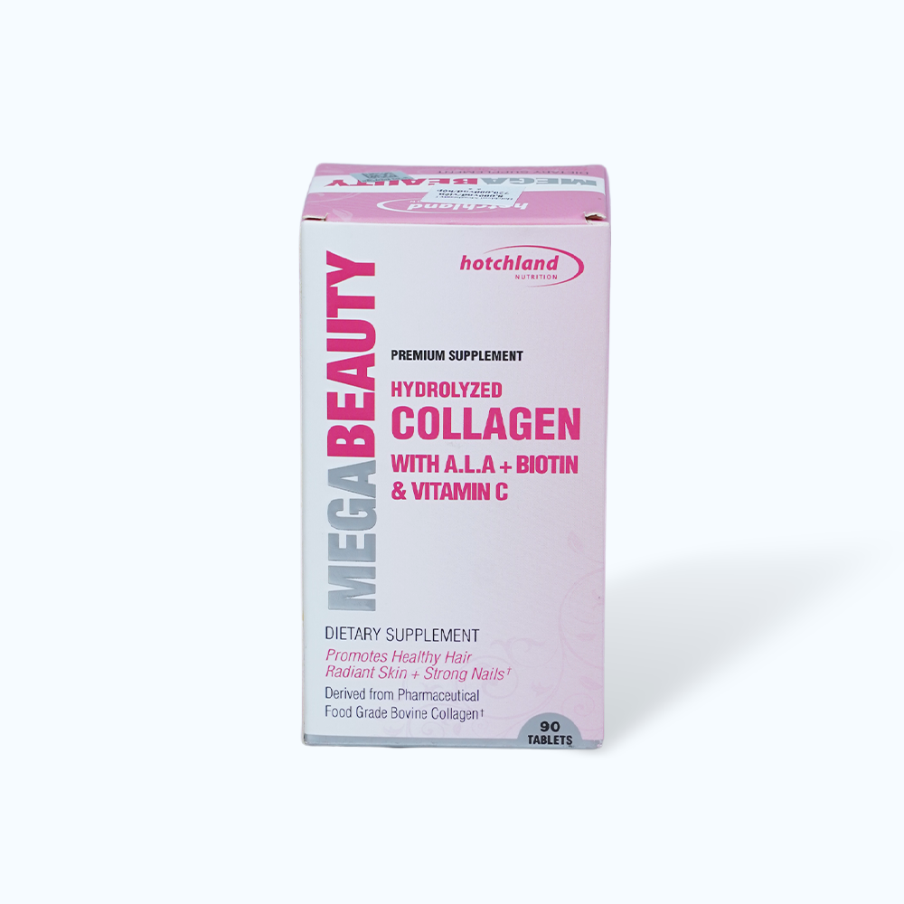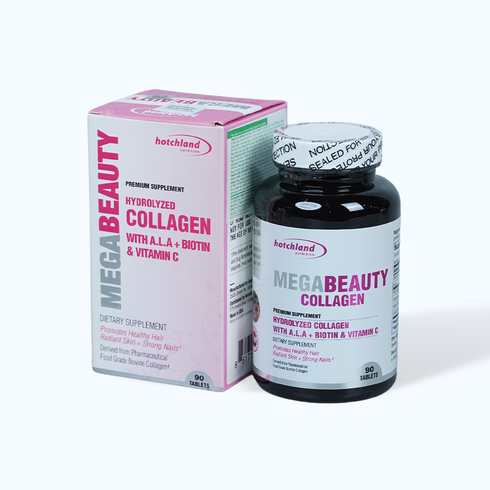 - Alpha Lipoic Acid 25 mg, Biotin 1500 mcg, Silic dioxit Phụ liệu Modified Cellulose Gum, Vegetable Stearates, Clear Vegetable Coating: Hypromellose, Glycerine. Trong sản phẩm không chứa Đậu nành, lúa mì, lactose, tinh bột, men, GMO, hoặc hương vị nhân tạo. Không chứa gluten. Công dụng của Viên uống Hotchland MegaBeauty Sản phẩm mang lại những tác dụng như: