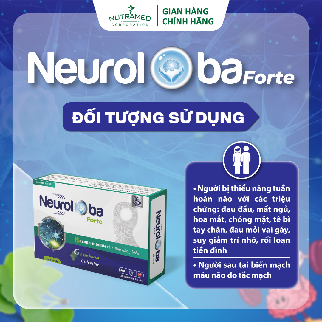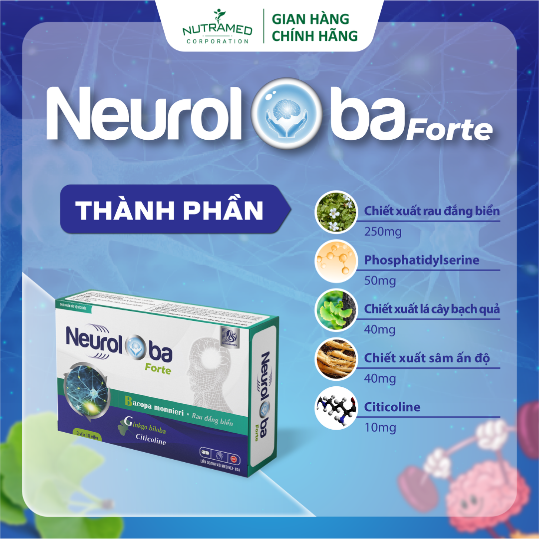 NEUROLOBA - Hỗ trợ tuần hoàn máu não, cải thiện các triệu chứng sau tai biến mạch máu não THÀNH PHẦN ️Bacopa monnieri extract (cao chiết rau đắng biển Ấn Độ), Ginkgo biloba extract