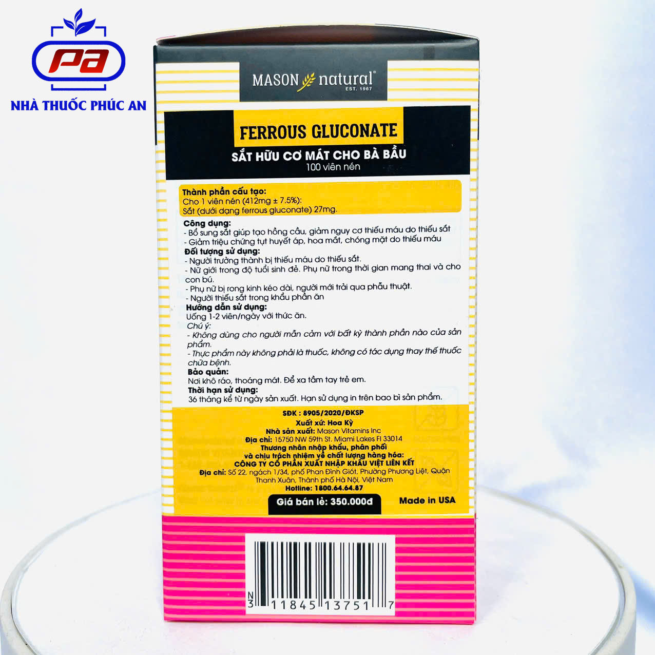 Mua tại TiktokViên uống sắt cho bà bầu MASON NATURAL Ferrouse Gluconate Mỹ 100 viên giúp bổ máu tăng sức đề kháng THÔNG TIN SẢN PHẨM: