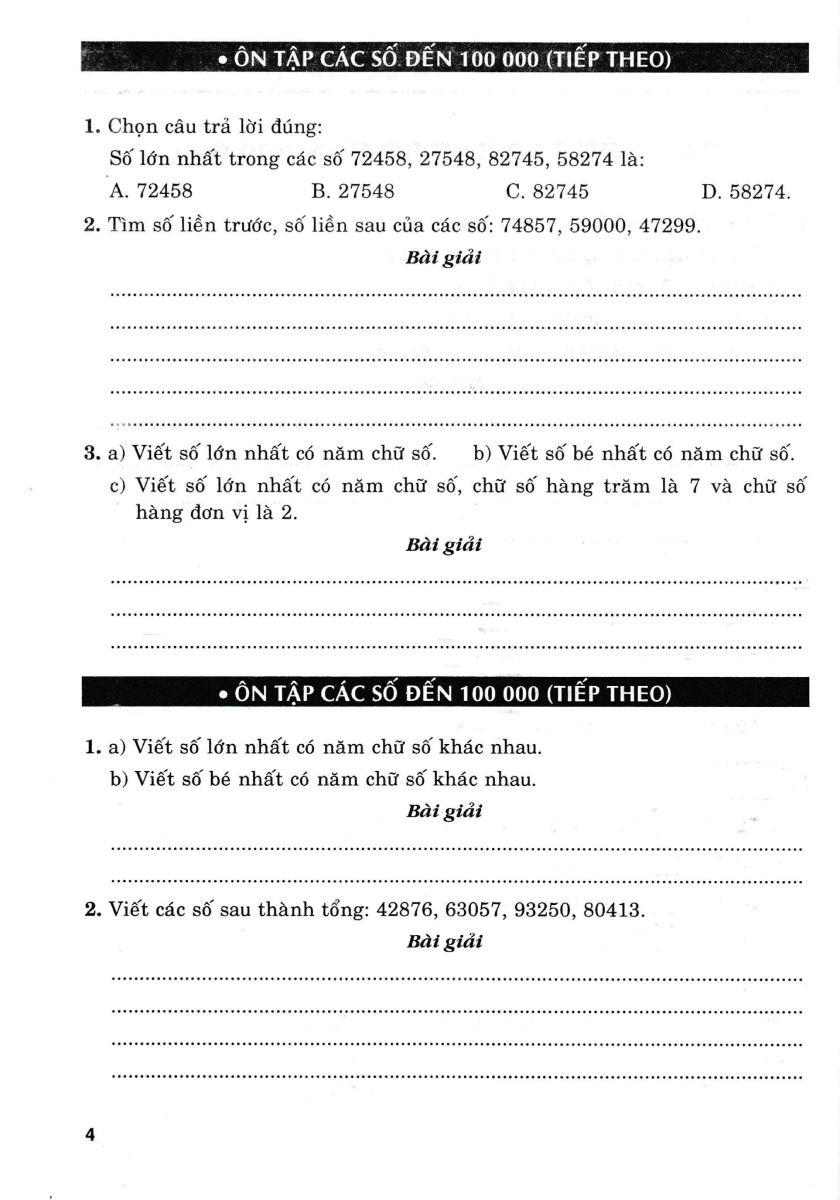 Toán Nâng Cao 4 - Bồi Dưỡng Học Sinh Khá, Giỏi Quyển sách TOÁN NÂNG CAO LỚP 4 là tài liệu tham khảo giúp họcsinh củng cố kiến thức và rèn luyện kỹ năng giải toán từ