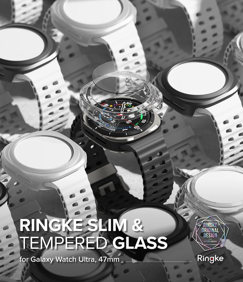 Vỏ ốp kèm dán cường lực Galaxy Watch Ultra RINGKE Slim & Glass Ưu điểm sản phẩm - Thương hiệu RINGKE Hàn Quốc, vừa vặn hoàn toàn Galaxy Watch Ultra (47 mm). - Thiết kế