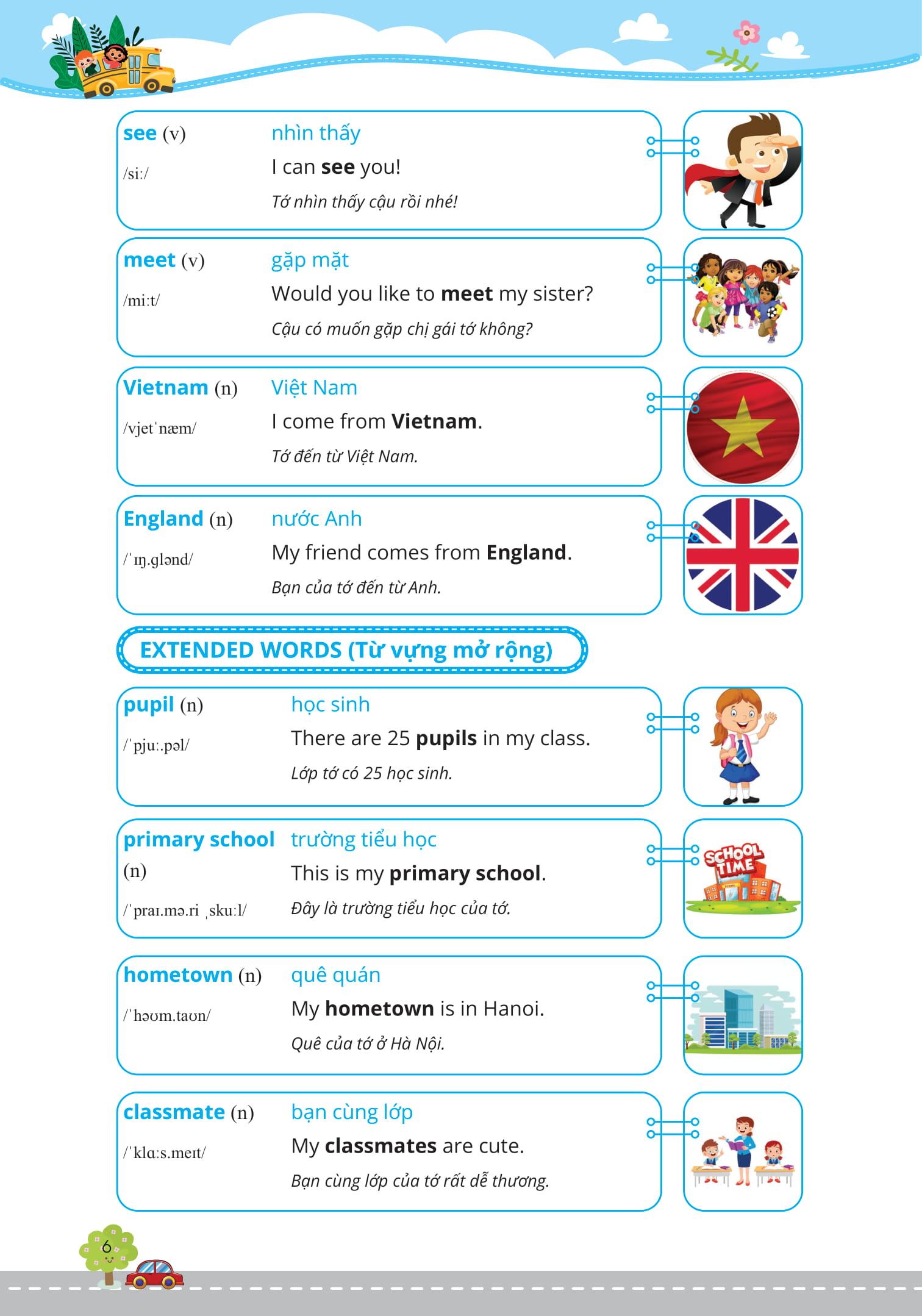 Bộ sách bám sát và mở rộng thêm kiến thức về từ vựng theo chương trình tiếng Anh Tiểu học của Bộ Giáo dục & Đào tạo, bao gồm 3 cuốn tương đương với 3 cấp độ: lớp 3, lớp 4 và lớp 5.