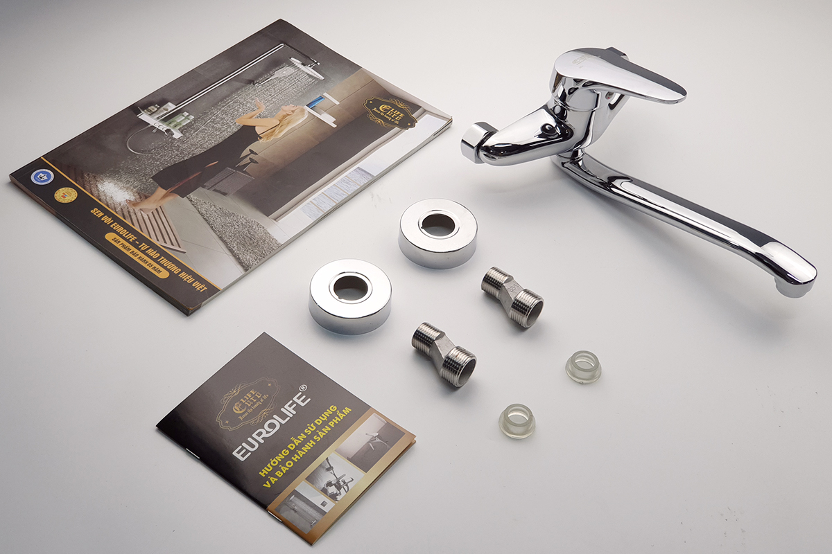Vòi rửa chén nóng lạnh Đồng mạ Chrome Eurolife EL-KM01 (Trắng bạc) * Hãng sản xuất : Eurolife Việt Nam * Chất liệu : Sản phẩm được đúc trọng lực bằng hợp kim đồng 61%,