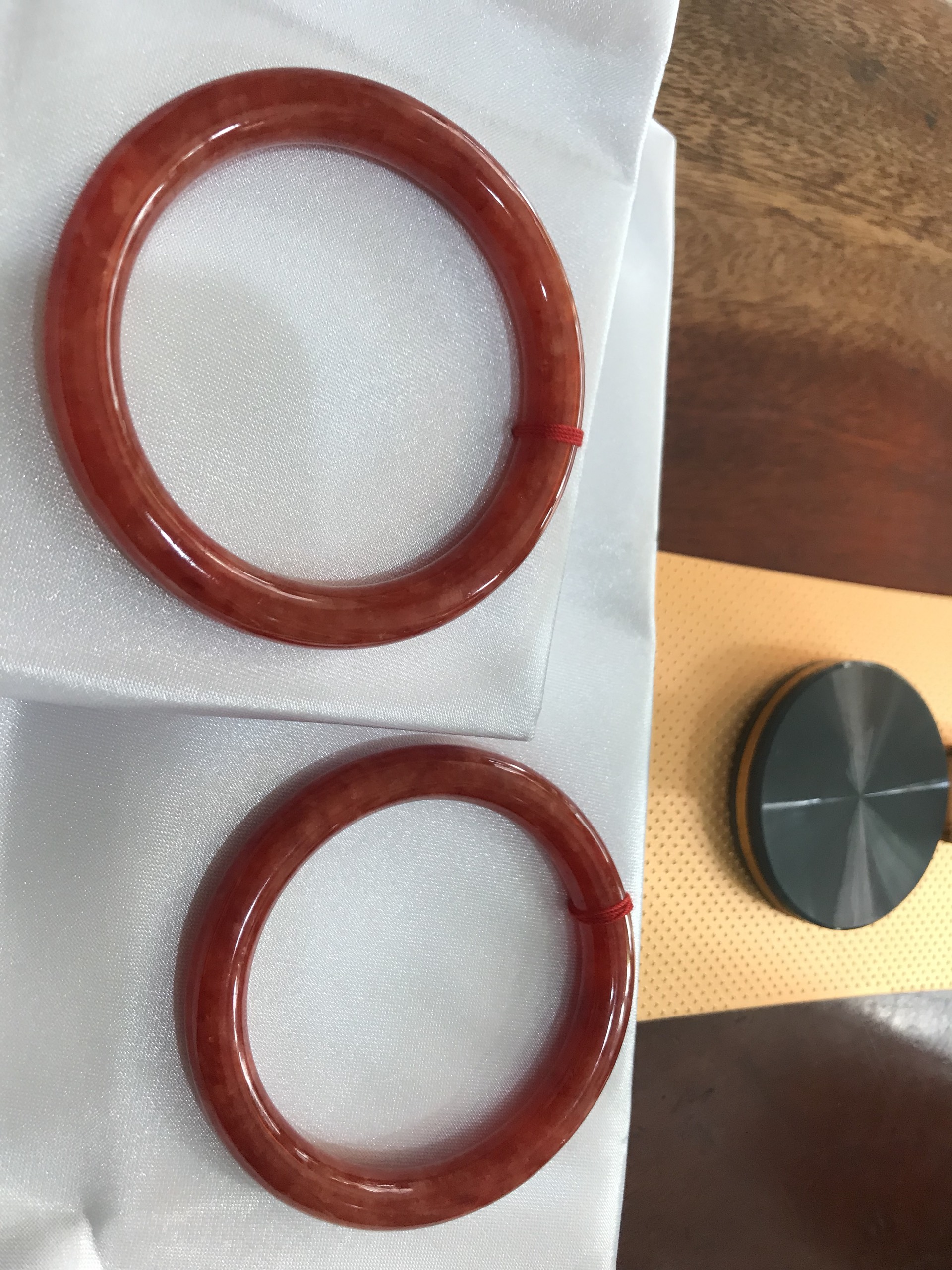 Vòng Cẩm Thạch Đỏ đẹp A 58mm x cọng 8mm Màu đỏ tươi sáng bóng mượt đỏ là màu chiến thắng chuẩn hợp nữ mạng hỏa mạng thổ Nữ nặng 55kg - 68kg đeo đẹp