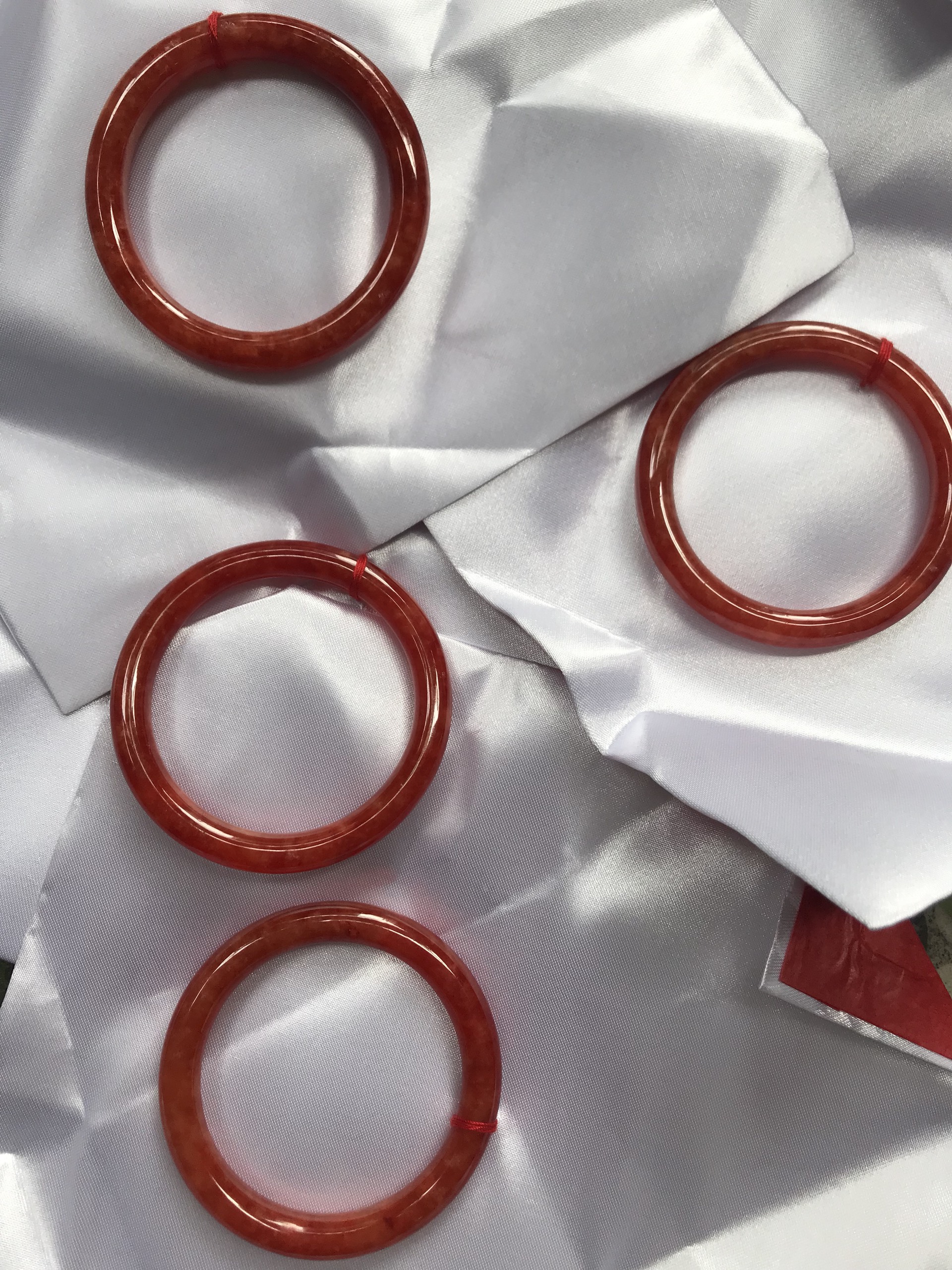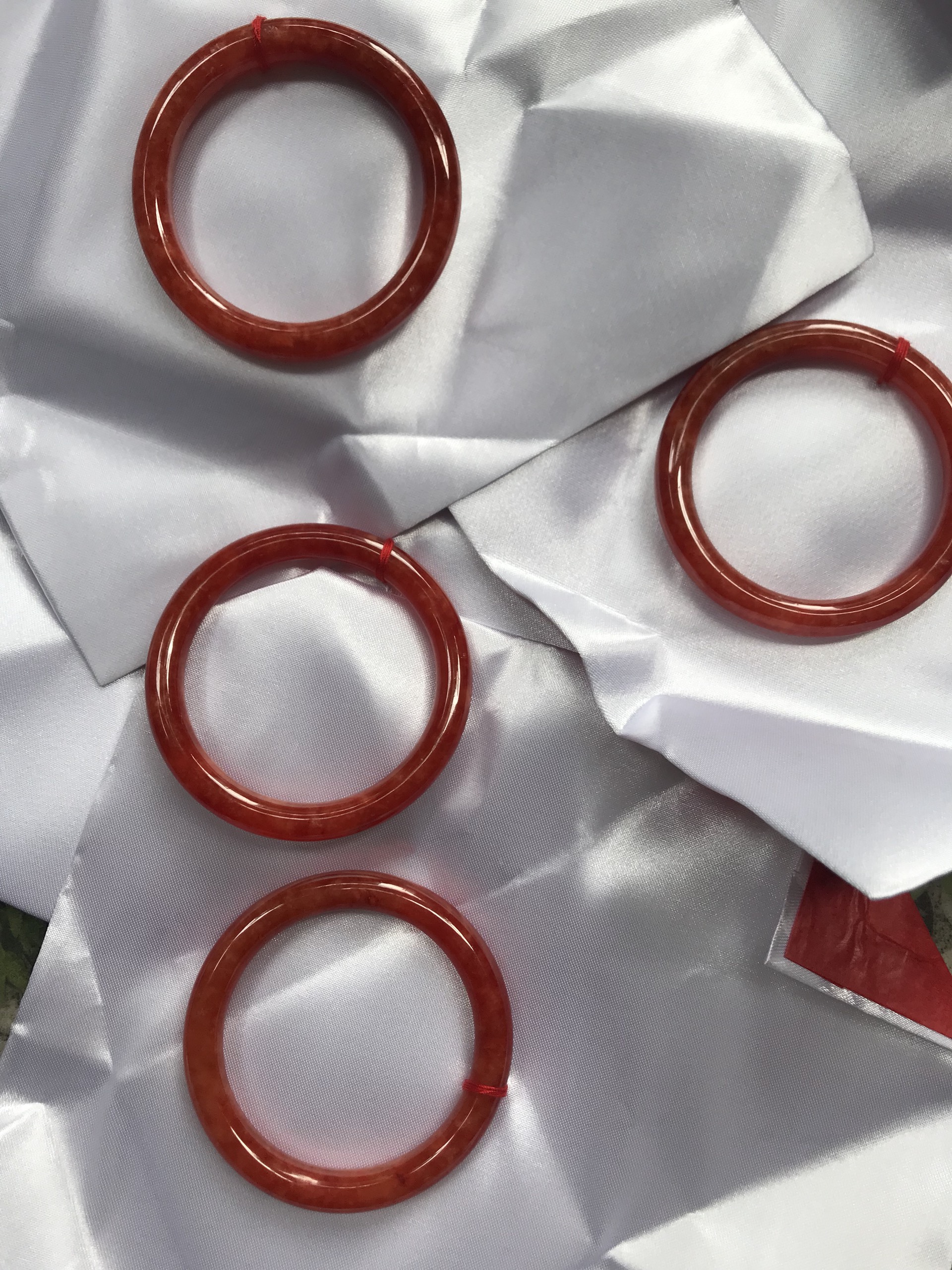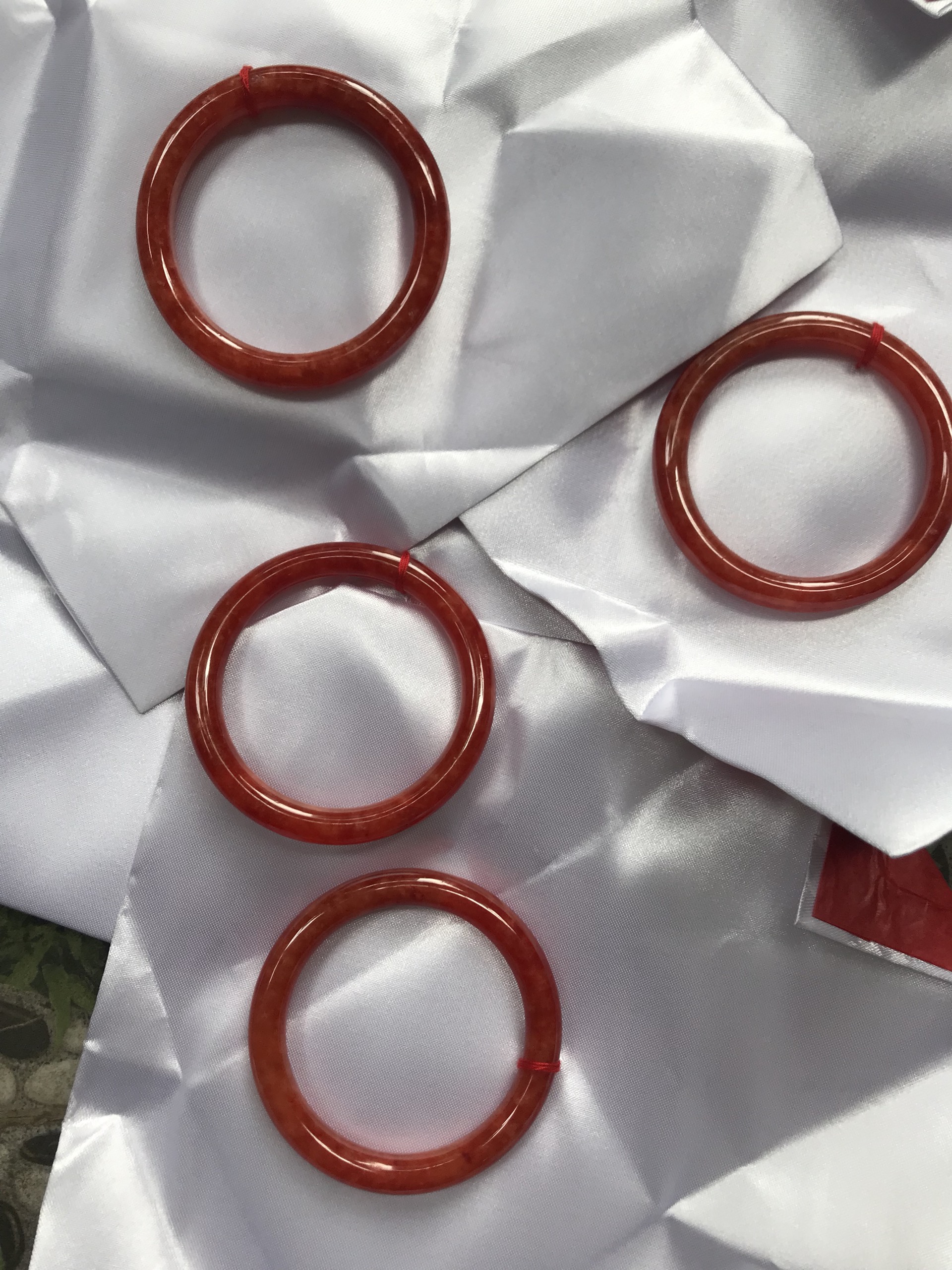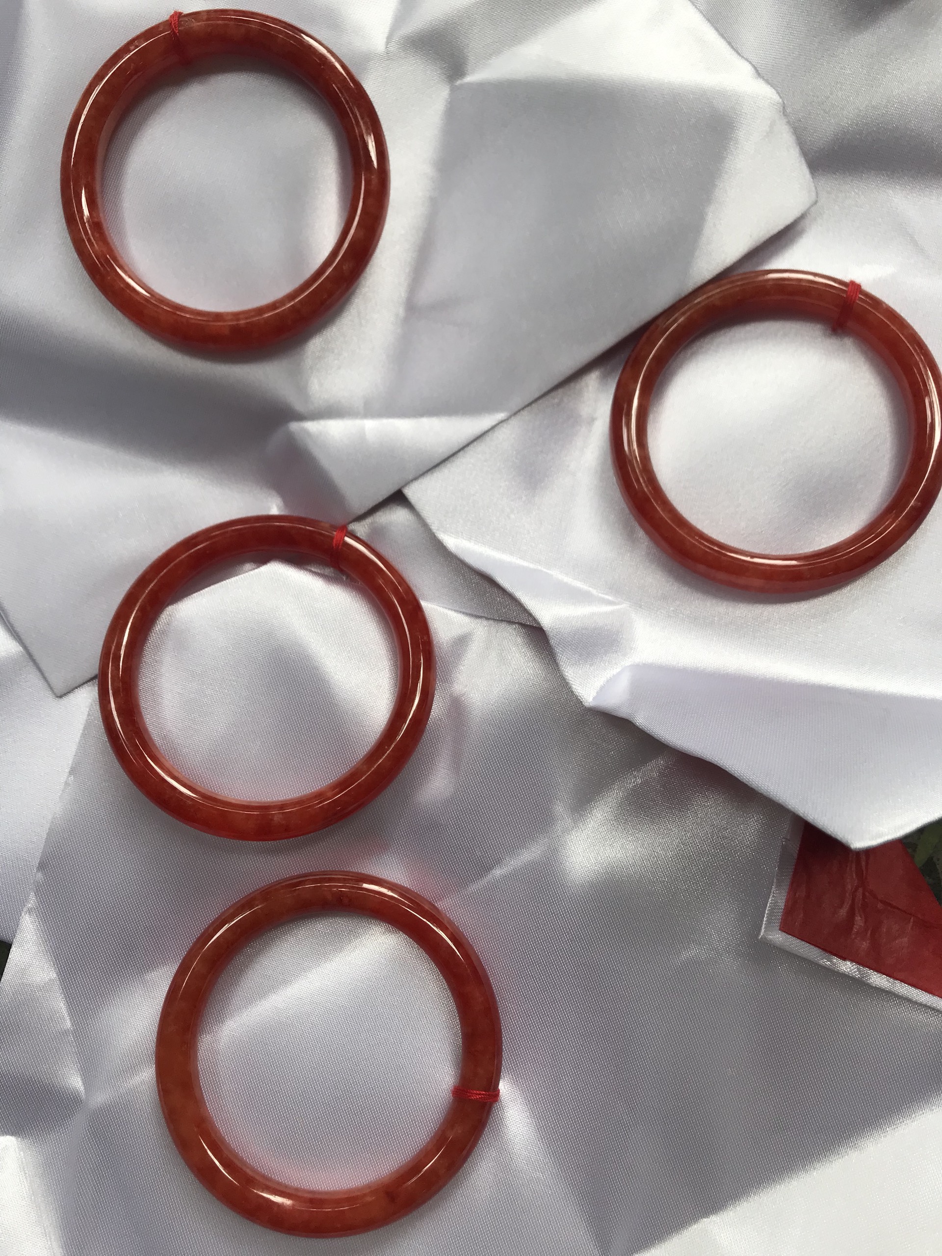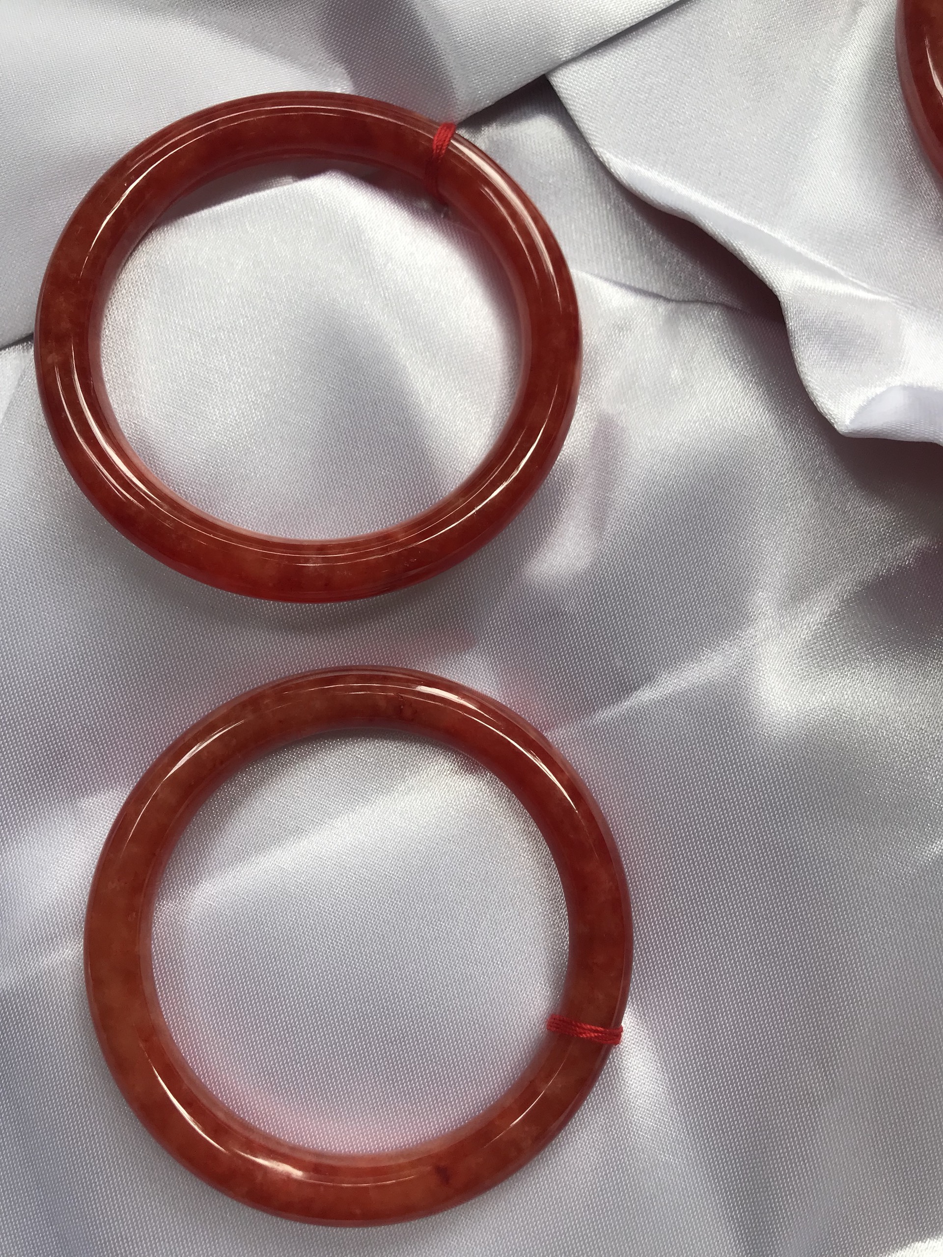 Vòng Cẩm Thạch Đỏ đẹp A 58mm x cọng 8mm Màu đỏ tươi sáng bóng mượt đỏ là màu chiến thắng chuẩn hợp nữ mạng hỏa mạng thổ Nữ nặng 55kg - 68kg đeo đẹp