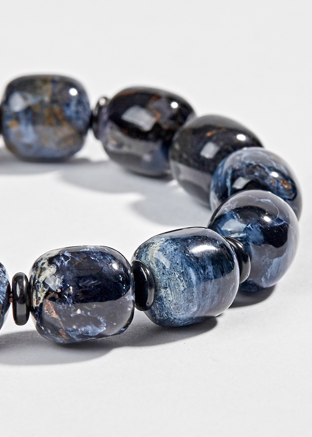 Với sự hợp kết đặc trưng của các loại đá thạch anh, mắt hổ, mắt diều hâu và cả Jasper nên Pietersite có màu sắc cuộn xoáy màu xanh, gỉ màu đỏ, vàng và nâu.