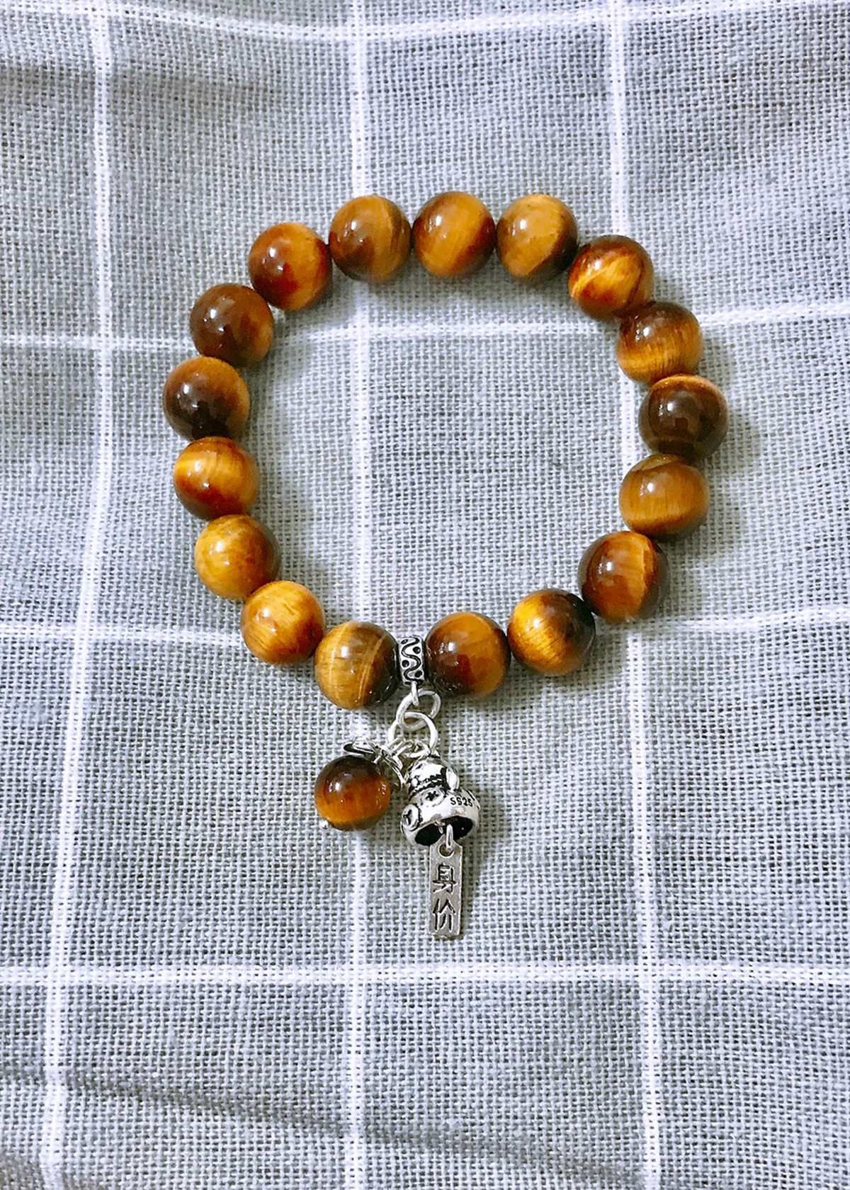 VÒNG THẠCH ANH MẮT HỔ VÀNG NÂU PHỐI CHARM MÈO MAY MẮNĐá Mắt Hổ có tên khoa học là Tiger Eye, là một loại tinh thể biến chất có màu sắc từ vàng, nâu đỏ đến xanh đen, bề mặt đá có hiệu ứng ánh sáng son...