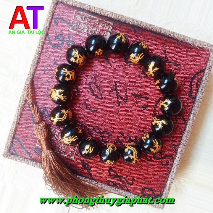 Vòng đeo tay đá đen huyền thạch chạm rồng là biểu tượng cho sự may mắn và sự thành công cho gia chủ.