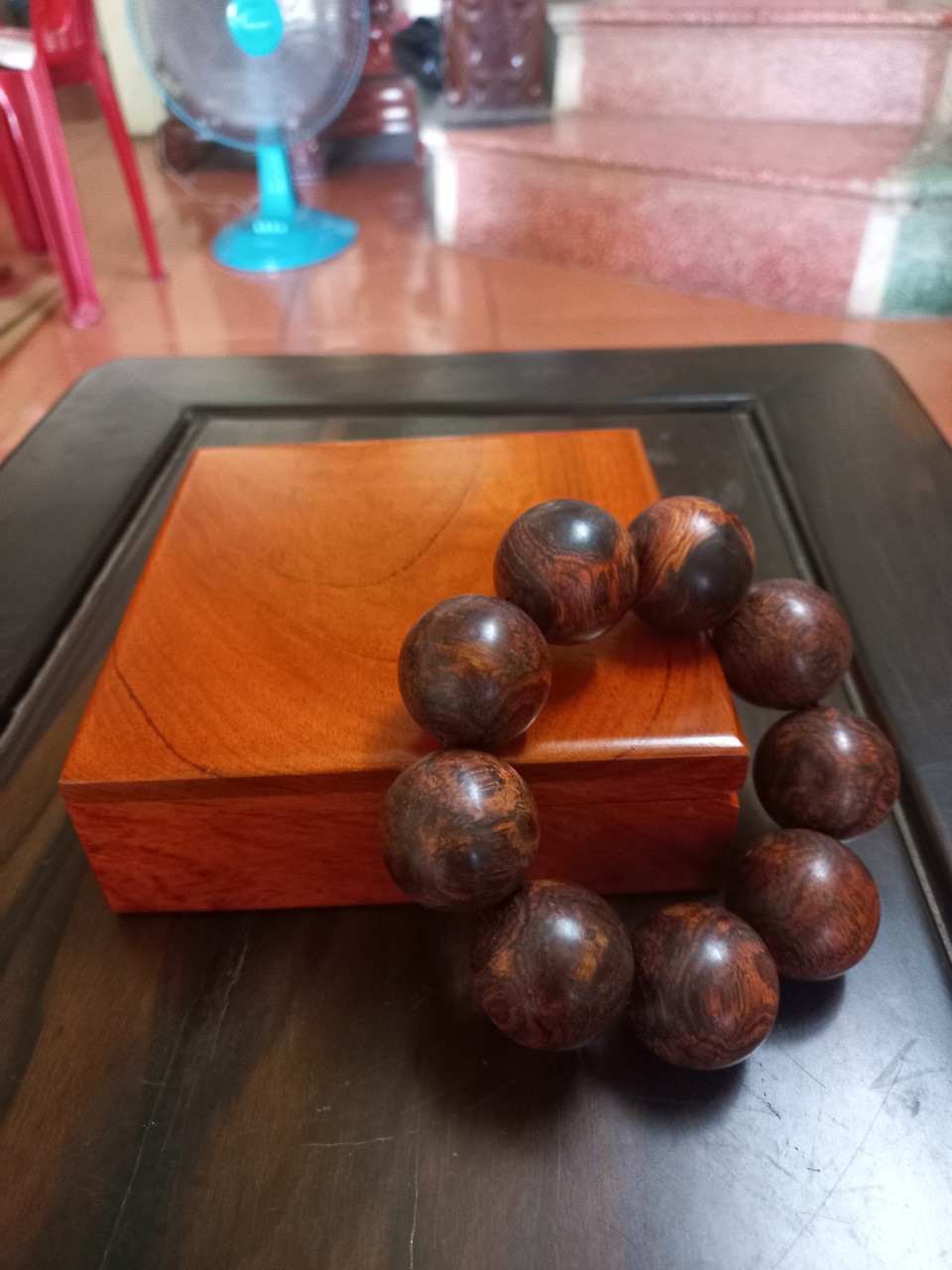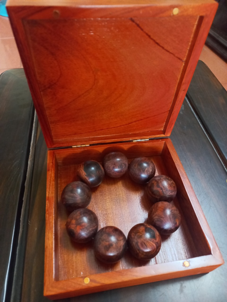 _ Kích thước hạt vòng to 25ly + hộp đựng vòng gỗ hương đá kt vuông hộp 14×14cm dầy 5cm