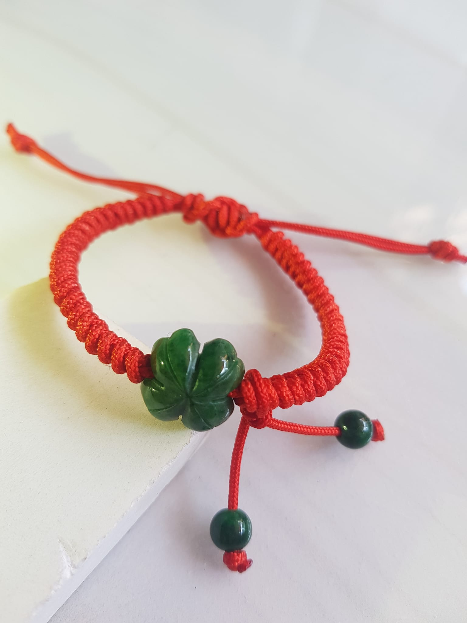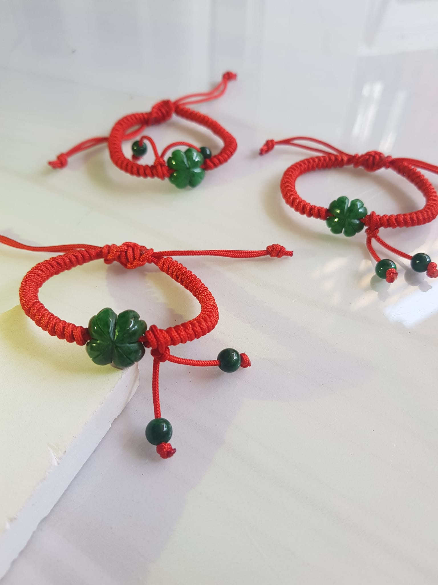 Vòng Đeo Tay Nữ Kiểu Dây Đỏ Cỏ 4 lá Xanh mới lạ đẹp lắm Chất liệu đá cẩm thạch xanh lá cỏ thắt dây kiểu đỏ rẻ đẹp Nữ đeo tay may mắn tăng
