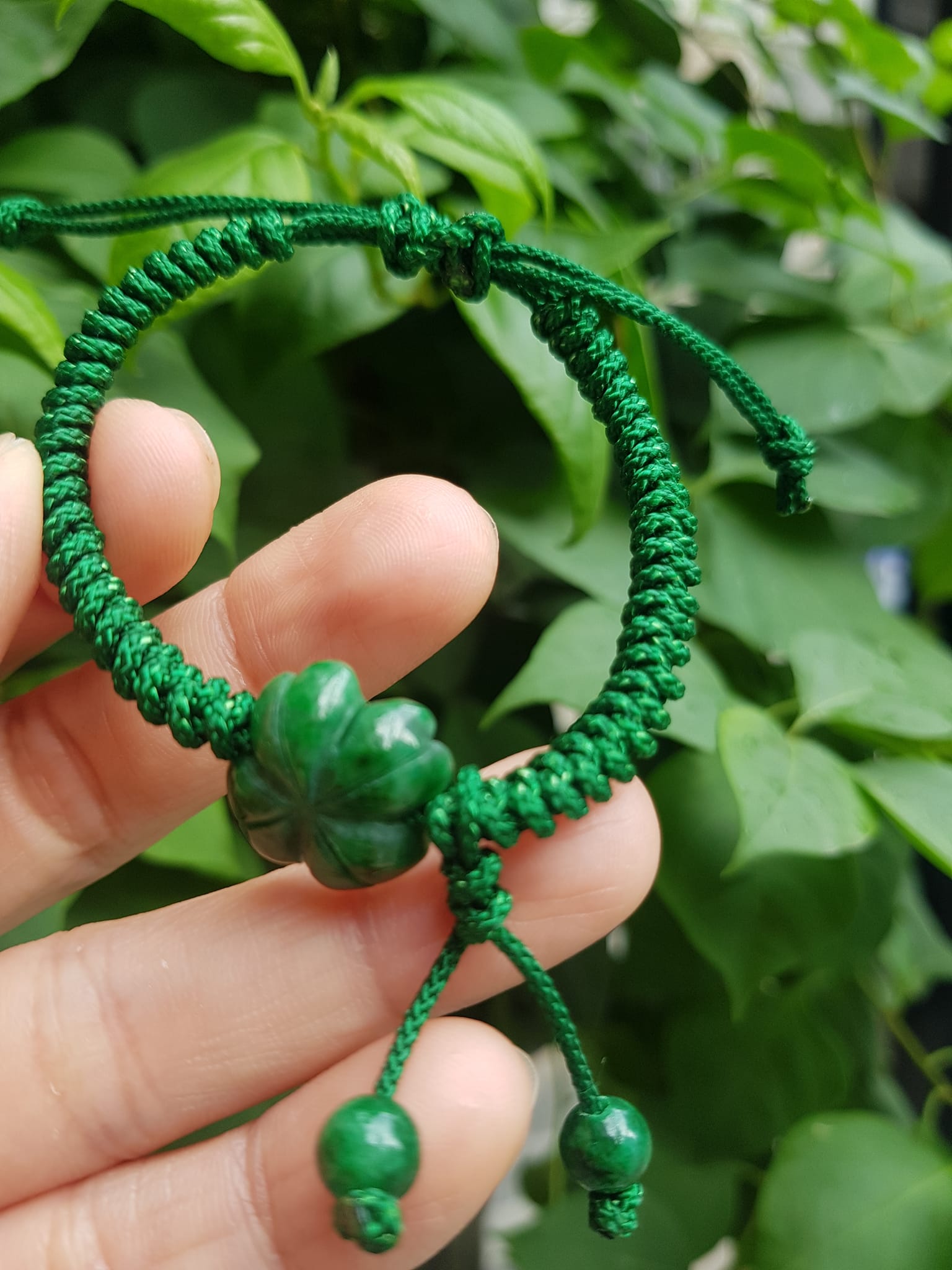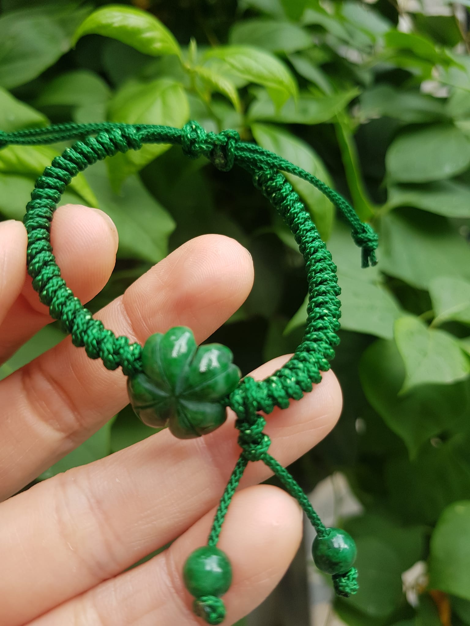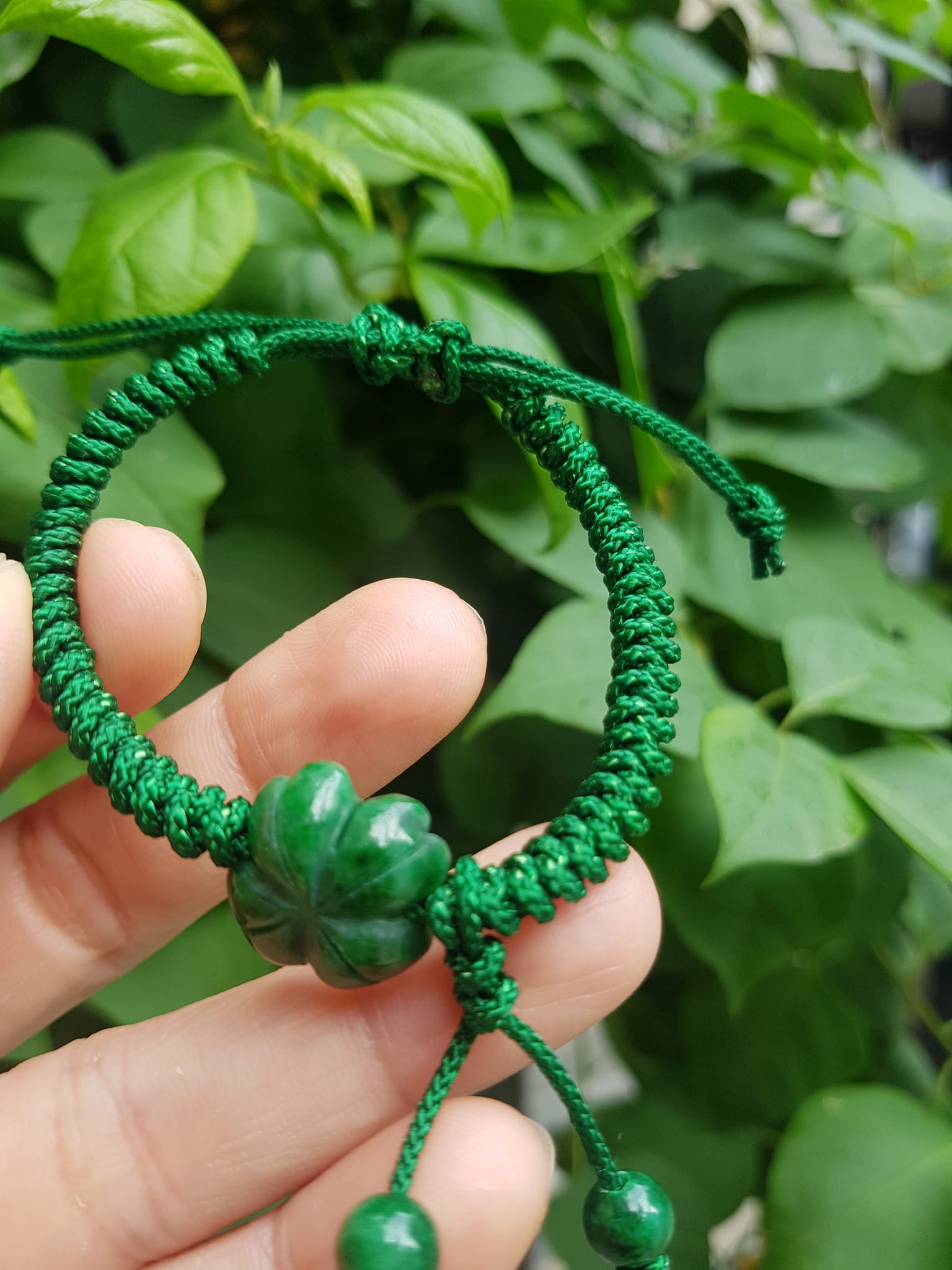 Vòng Đeo Tay Nữ Kiểu Dây Xanh Cỏ 4 lá Xanh mới lạ đẹp lắm à nha Chất liệu đá cẩm thạch xanh lá cỏ thắt dây kiểu xanh xanh rẻ đẹp lắm à nhen
