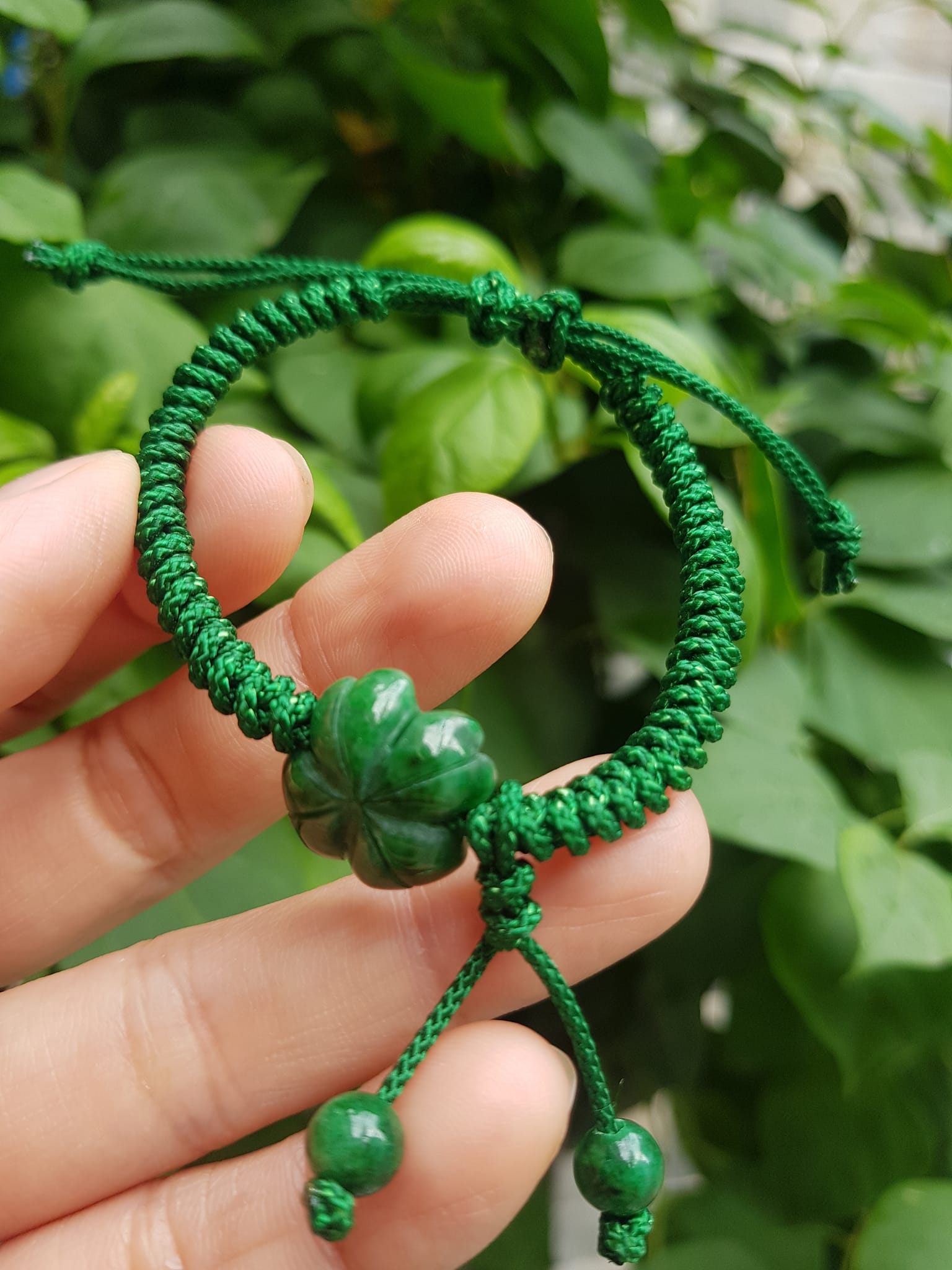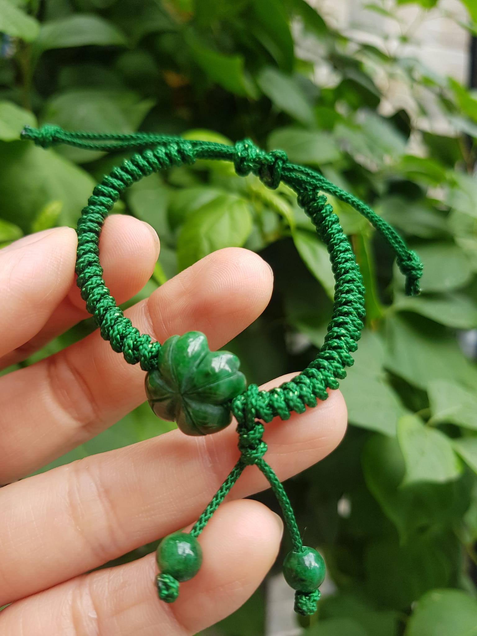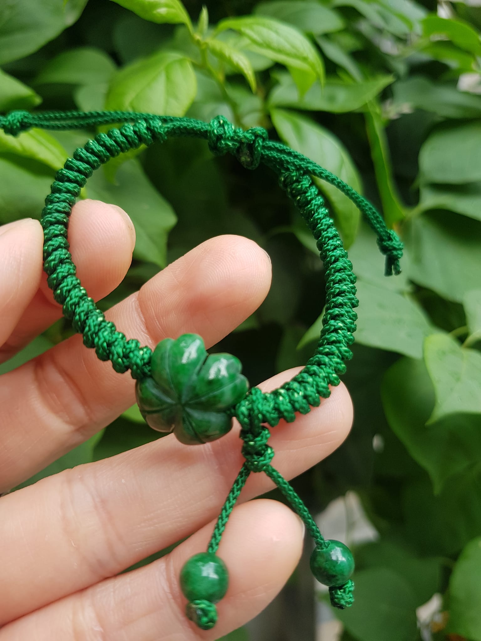 Vòng Đeo Tay Nữ Kiểu Dây Xanh Cỏ 4 lá Xanh mới lạ đẹp lắm à nha Chất liệu đá cẩm thạch xanh lá cỏ thắt dây kiểu xanh xanh rẻ đẹp lắm à nhen