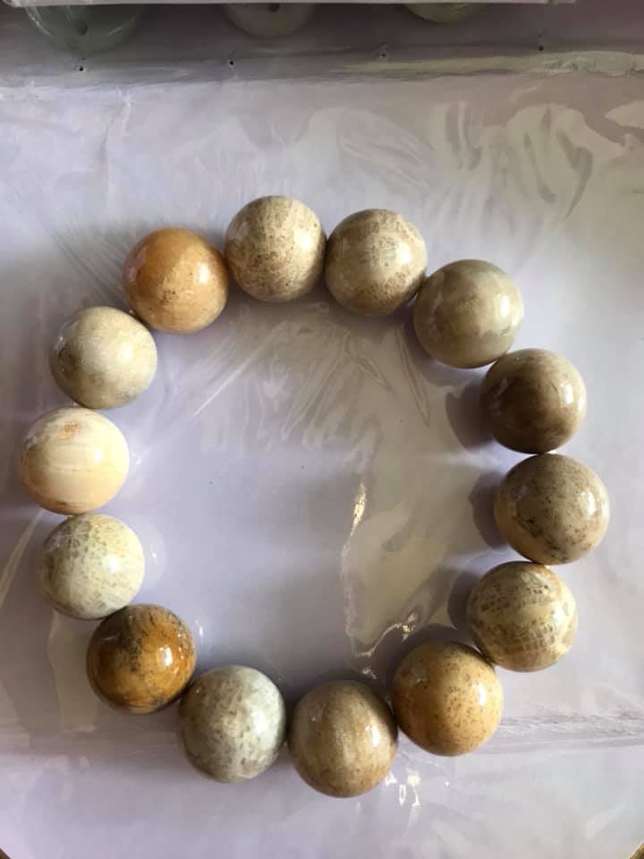Vòng Nam Đeo size 14ly gồm 14 hạt vô cung Chât liệu SAN HÔ HÓA THẠCH Vòng Màu vàng trắng Sáng Nam đeo tay đẹp sang tốt ạ Sản phẩm này là tài sản cá