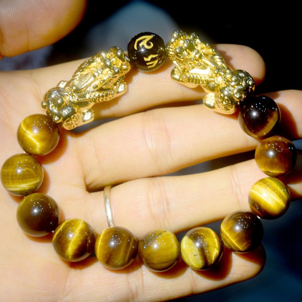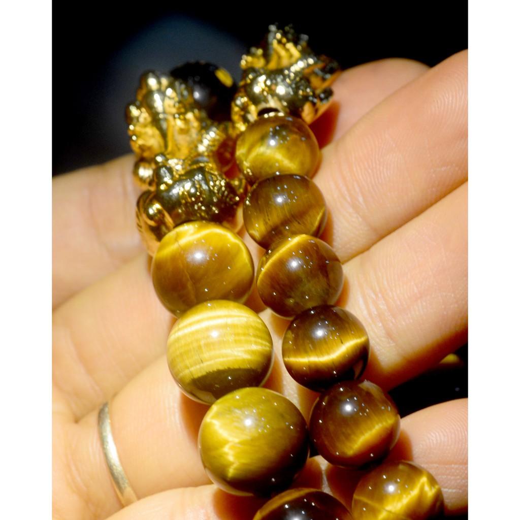 ✨Vòng tay chuỗi hạt đá mắt hổ hai tỳ hưu mạ vàng 10ly-12ly
