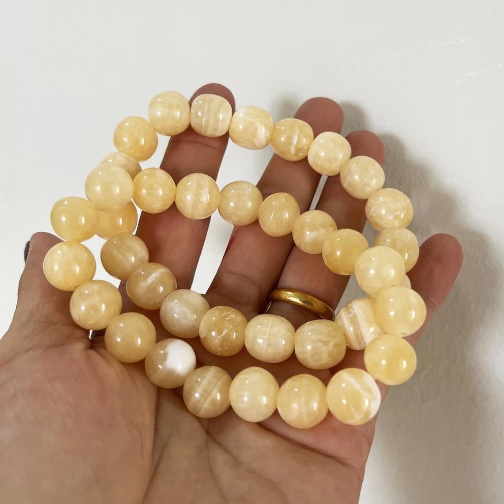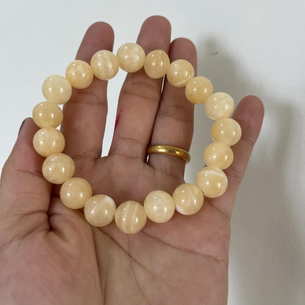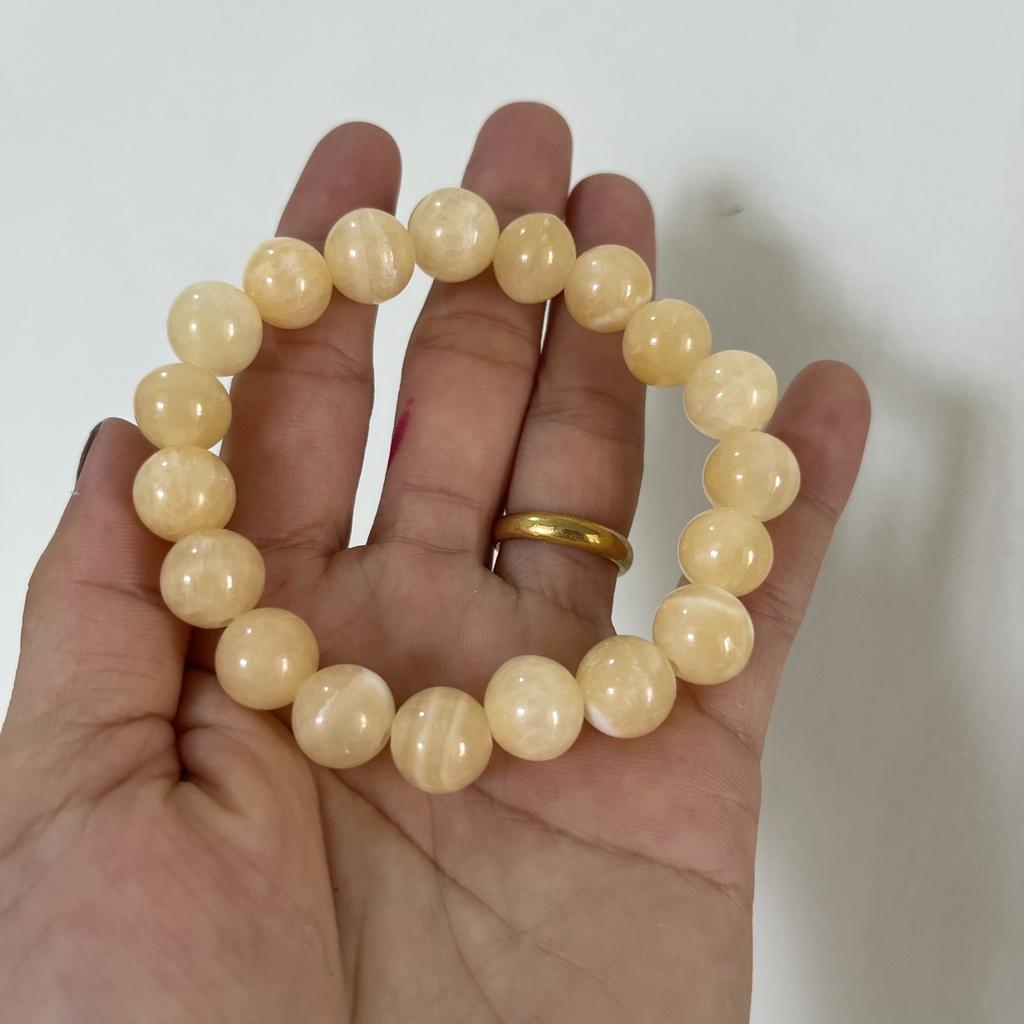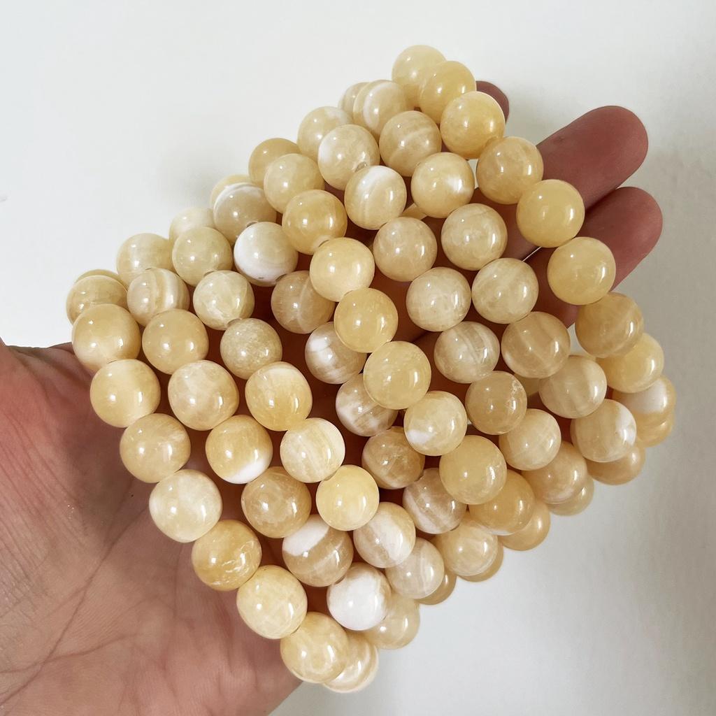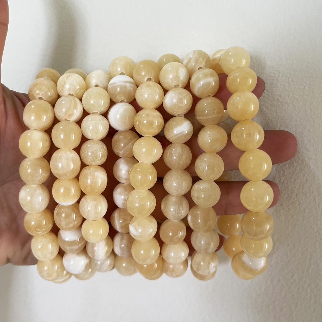 ✨Vòng tay chuỗi hạt ngọc thật màu vàng cam cho người mệnh Thổ và hỏa đường kính hột 10 li (1cm)