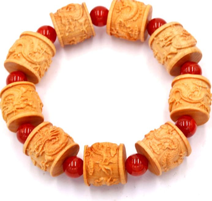 Kích thước : 9 hạt gỗ khắc hình trụ rồng 20mm x 20mm, đá vân rồng : 8 ly, vòng chuỗi dài 252mm