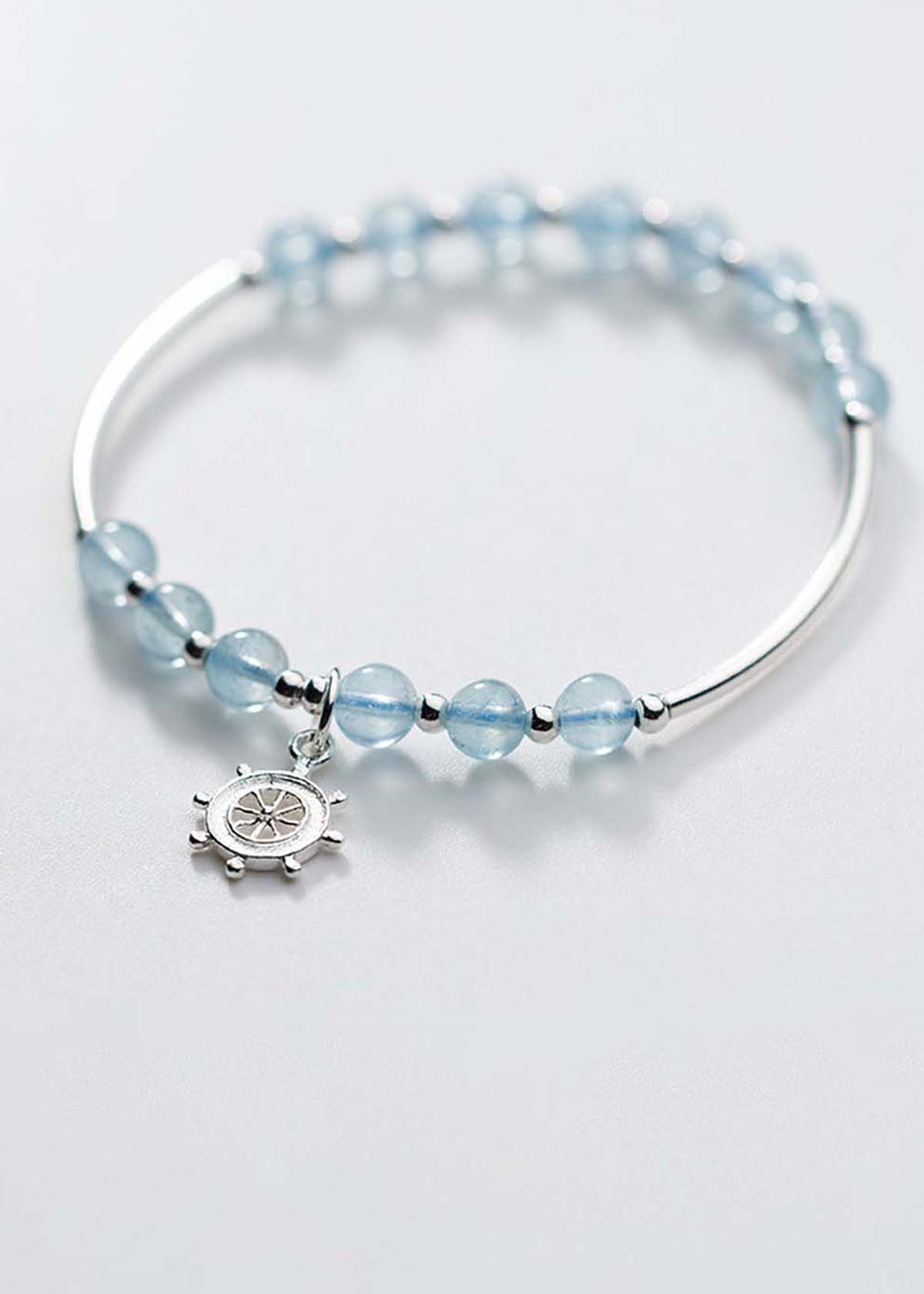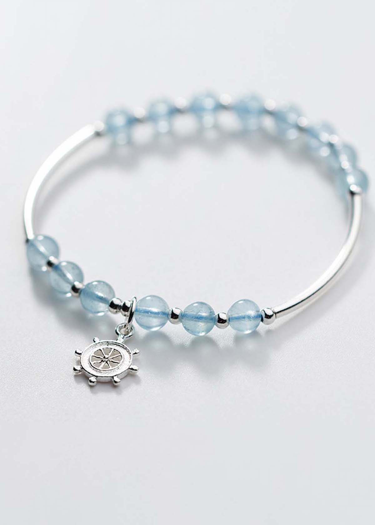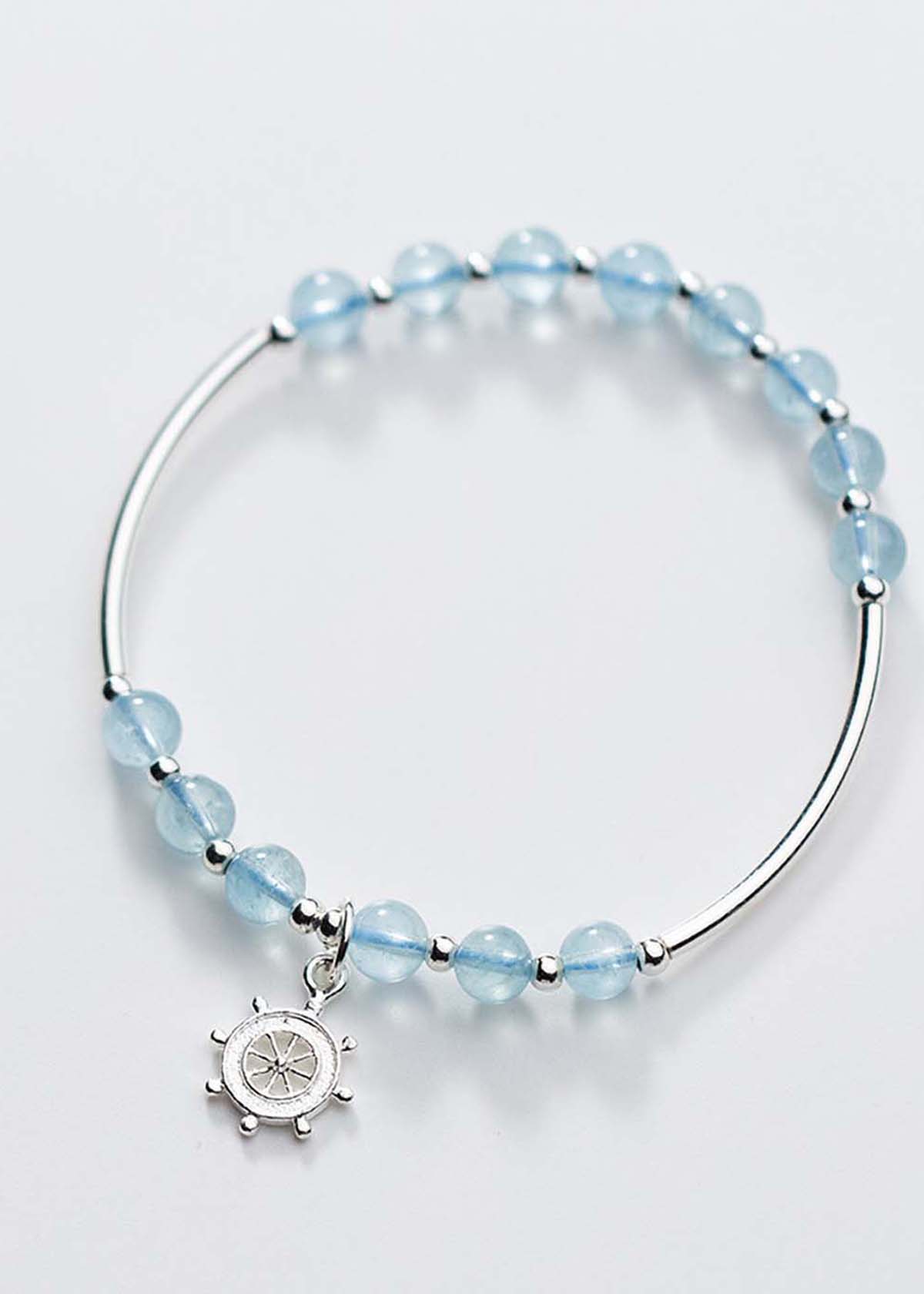 ✨Vòng tay đá Aquamarine phối charm bánh lái mệnh thủy, mộc - Ngọc Quý Gemstones