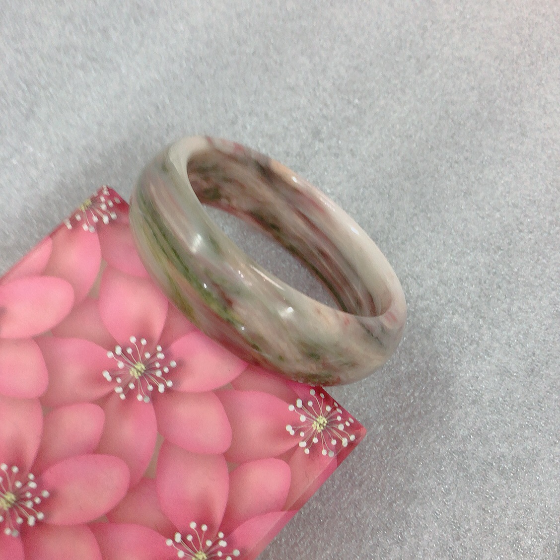 Vòng tay đá ngọc cẩm thạch 100% tự nhiên chạm hoa mai kiểu Ni 48mm Xanh ngọc 1 bên sơn thủy bên #48