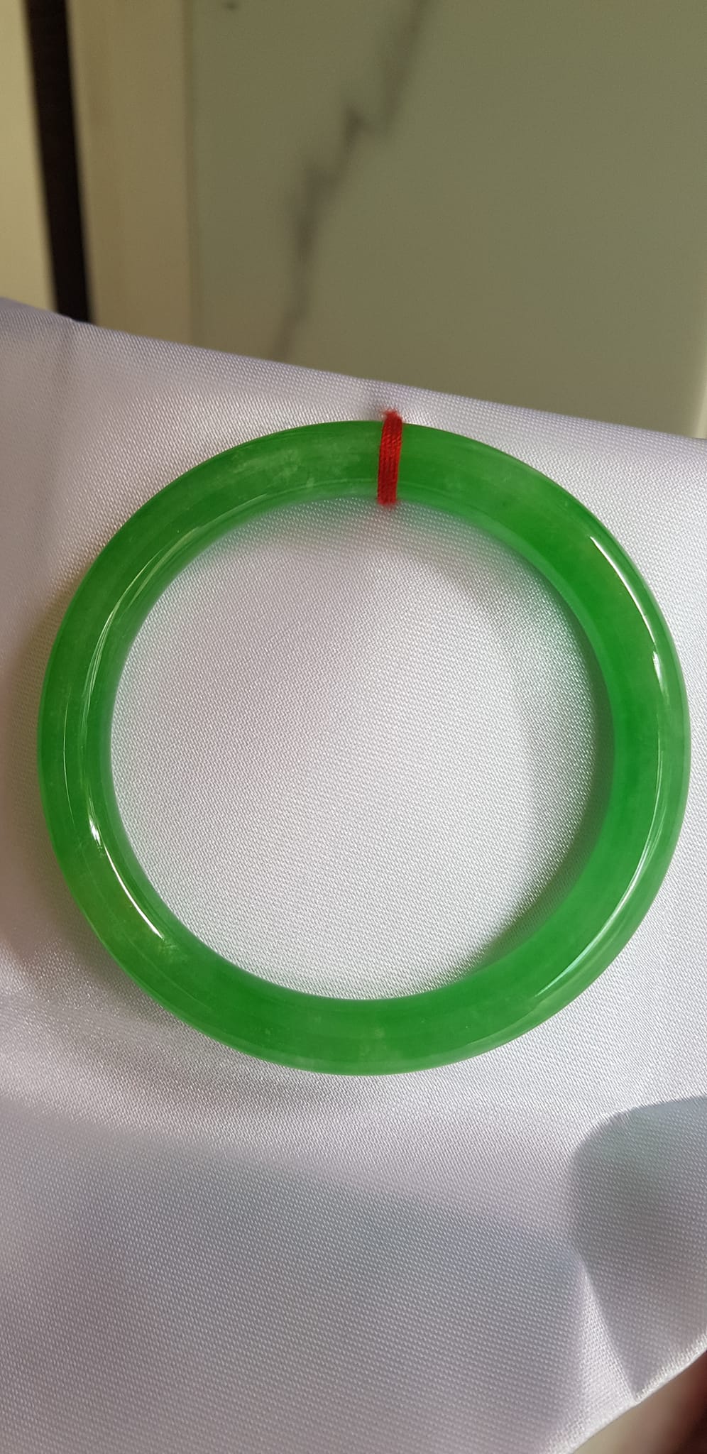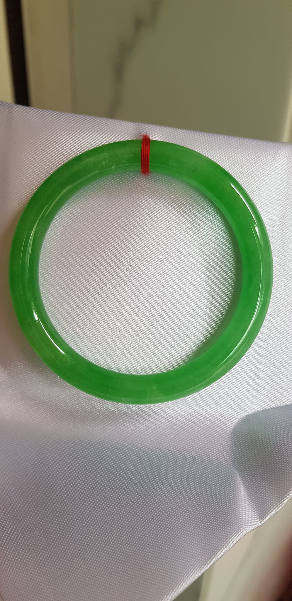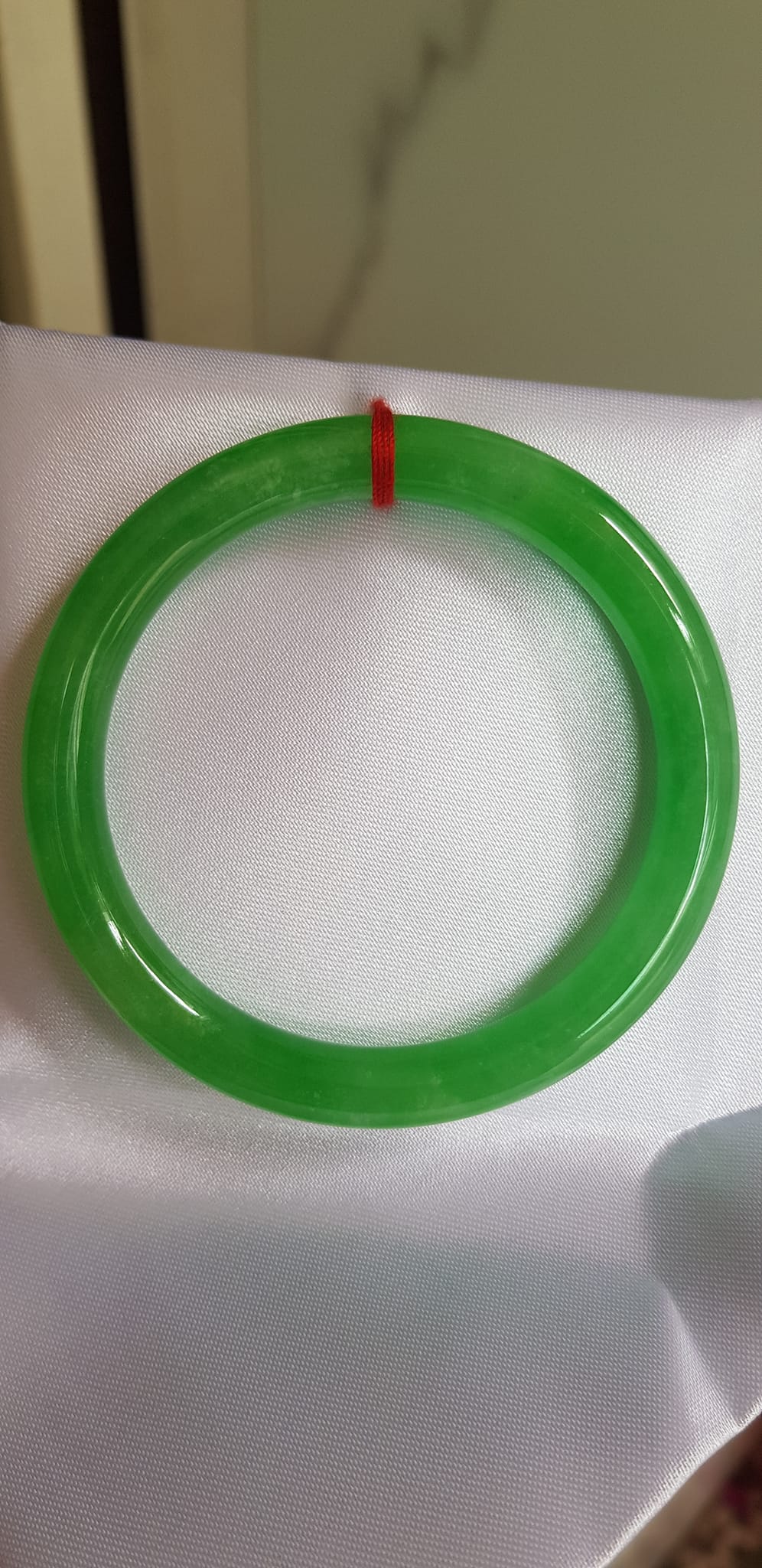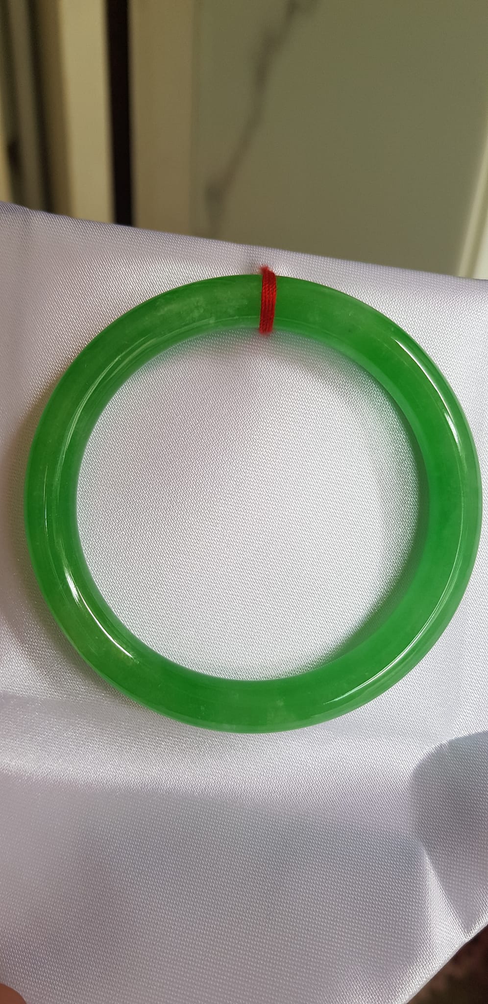 Vòng cẩm thạch Đ Lý 52mm x dầy 7,8mm màu xanh lá tươi hợp Nữ mệnh Mộc mệnh Hỏa 52kg - 56kg đeo ạ