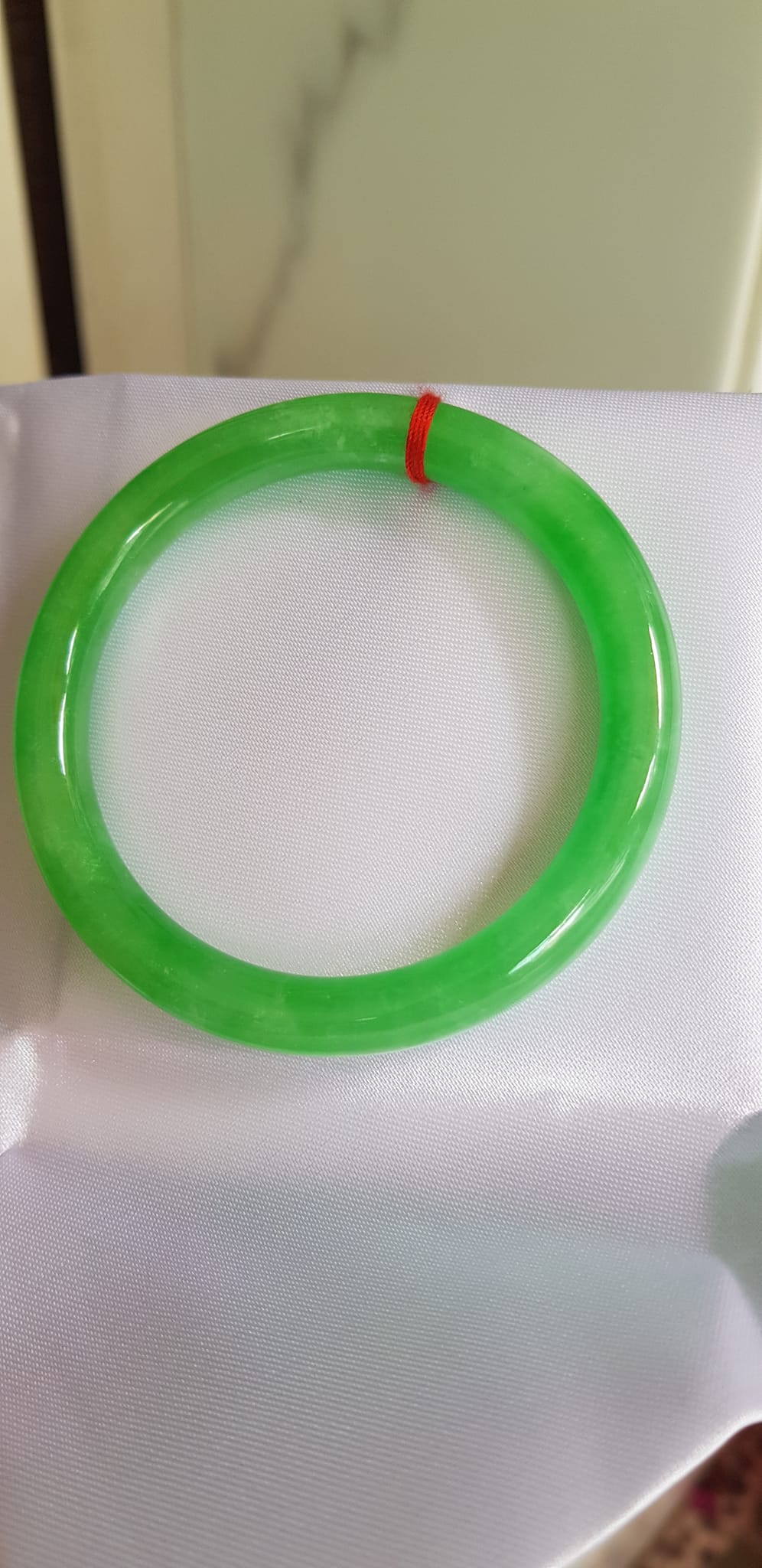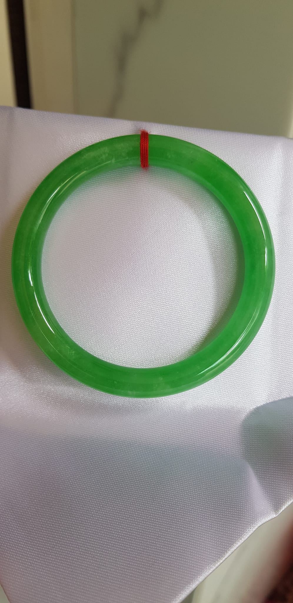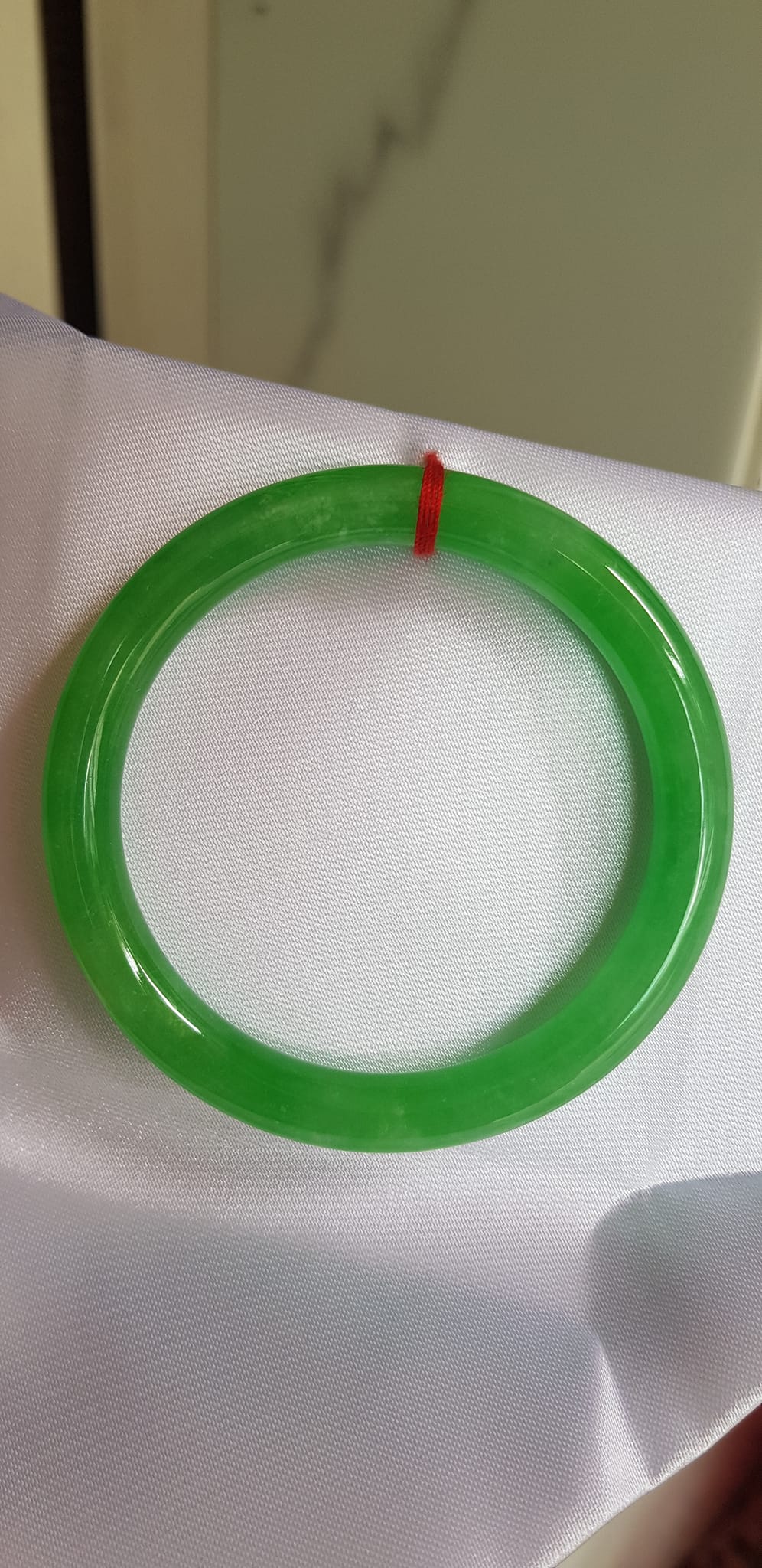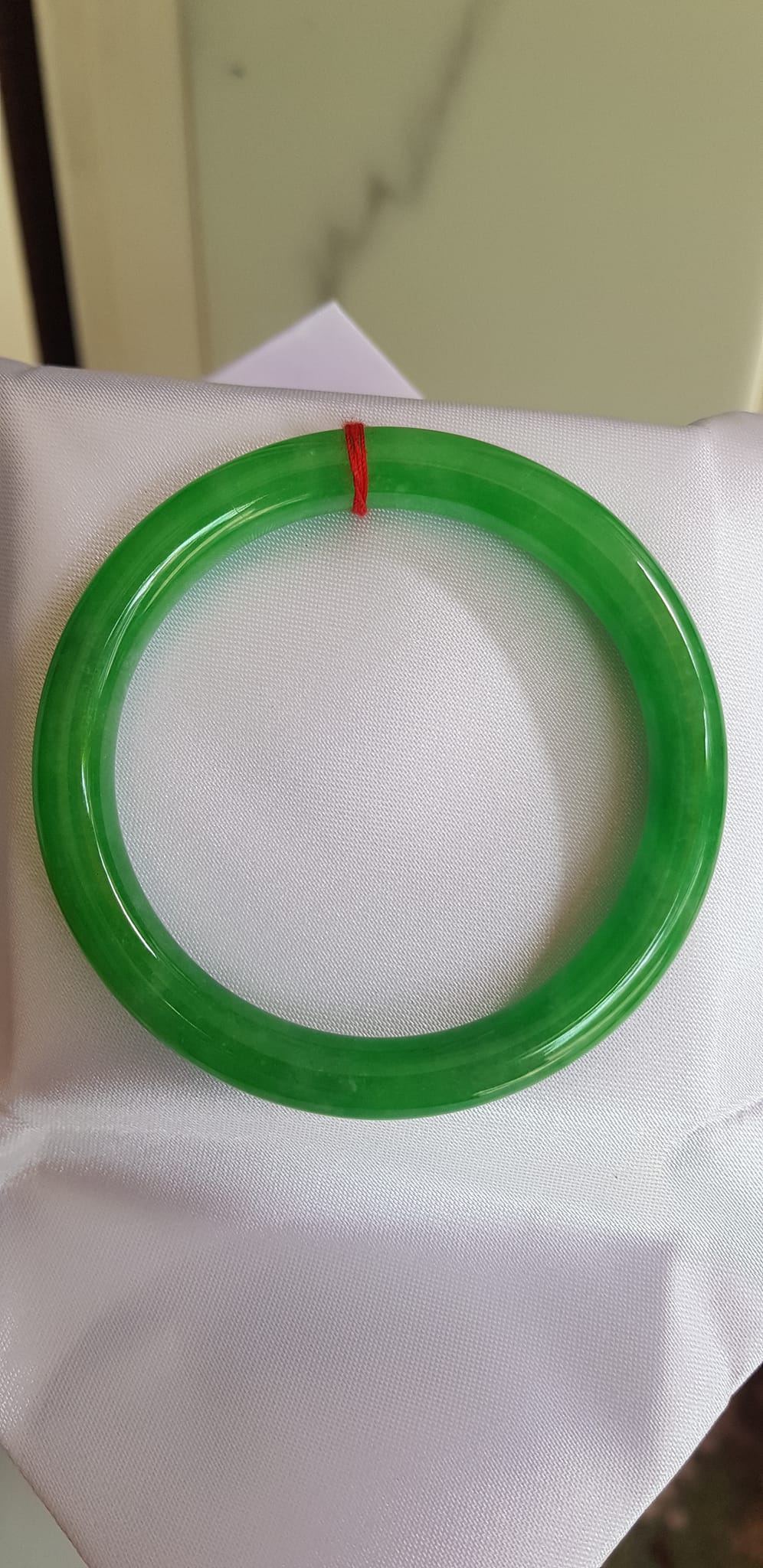Vòng cẩm thạch Đ Lý 52mm x dầy 7,8mm màu xanh lá tươi hợp Nữ mệnh Mộc mệnh Hỏa 52kg - 56kg đeo ạ