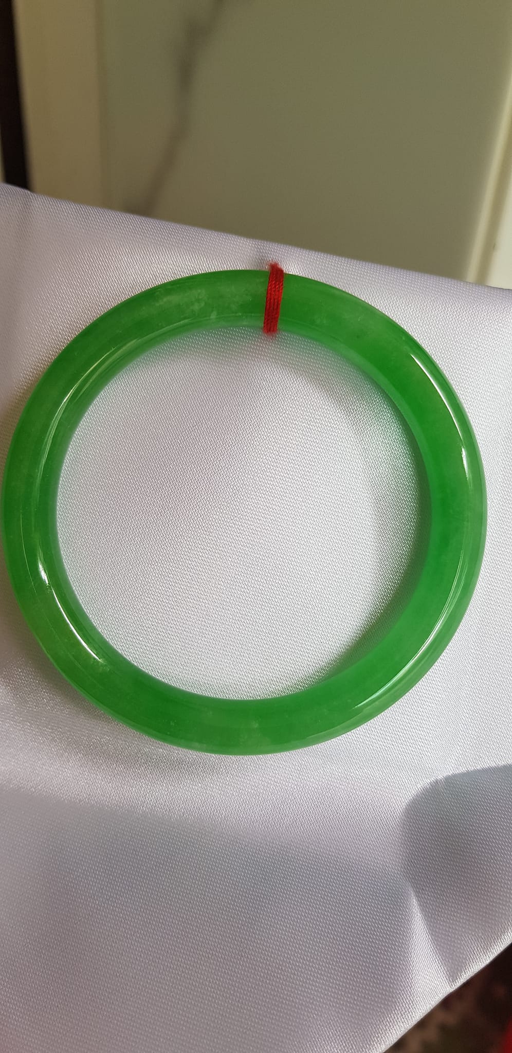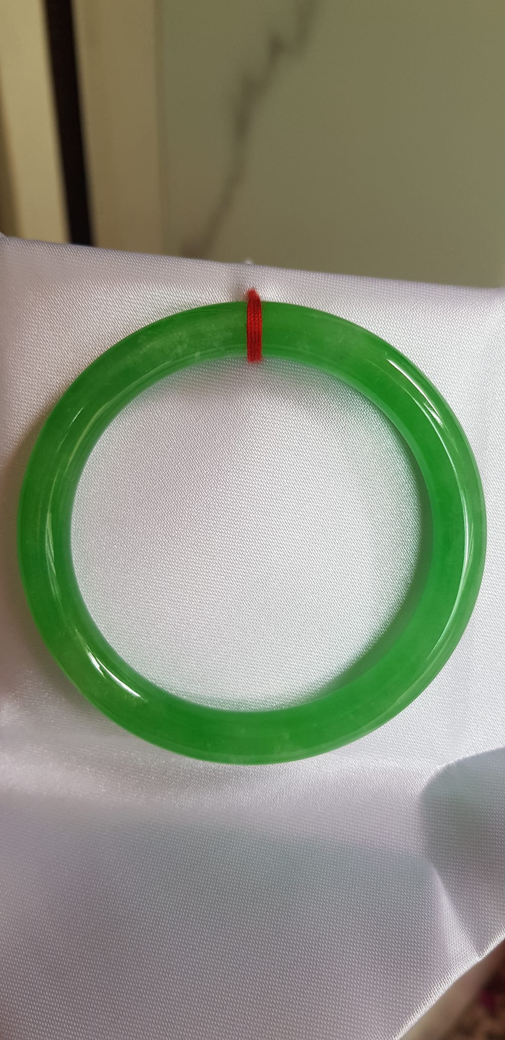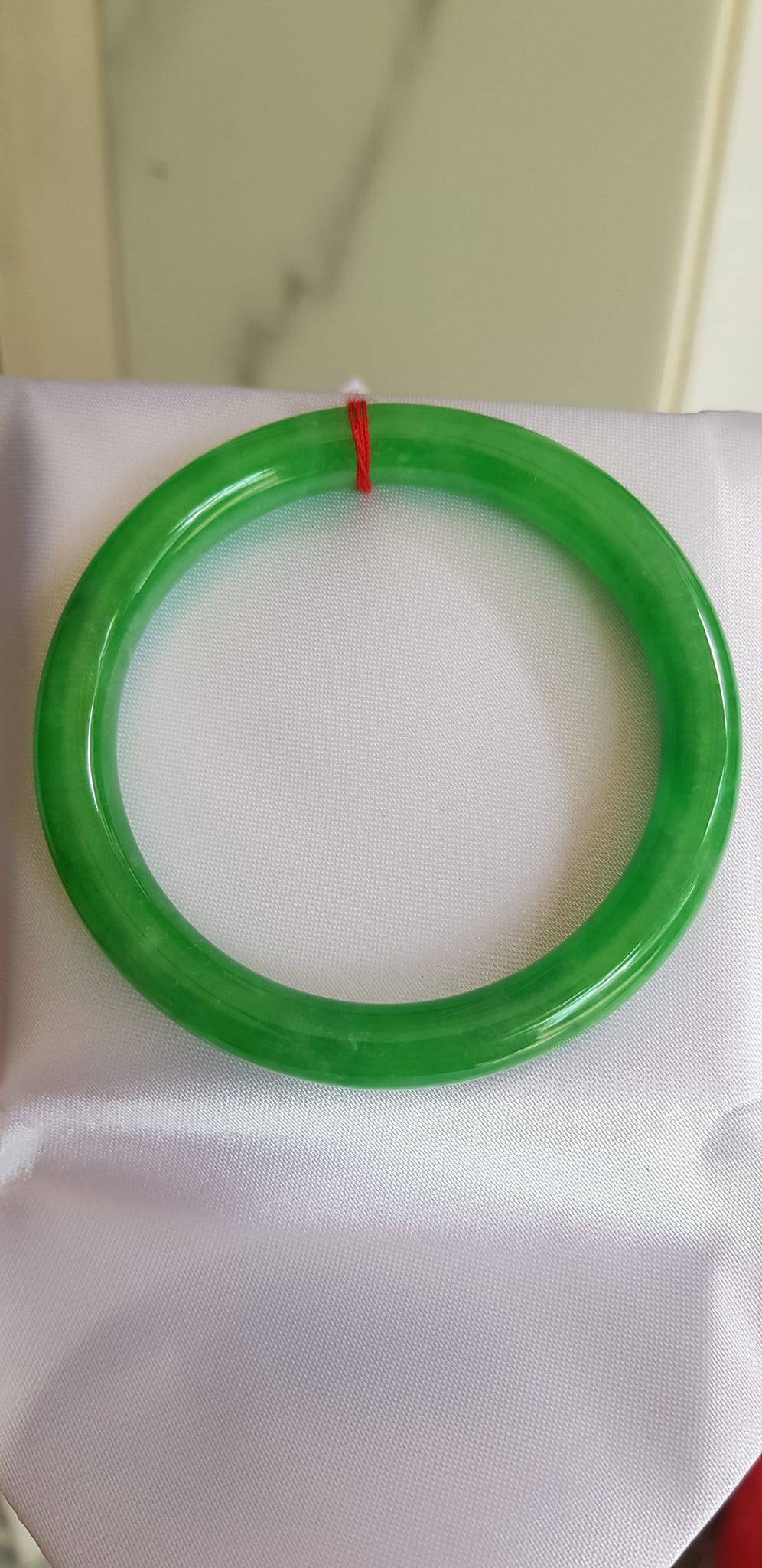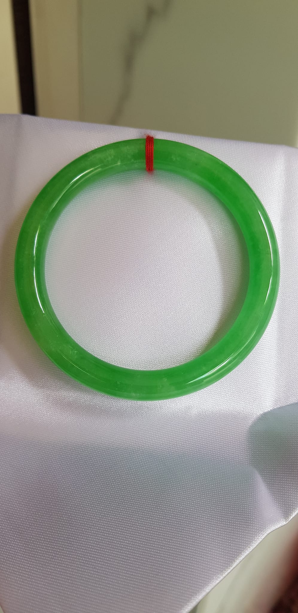 Vòng cẩm thạch Đ Lý 52mm x dầy 7,8mm màu xanh lá tươi hợp Nữ mệnh Mộc mệnh Hỏa 52kg - 56kg đeo ạ