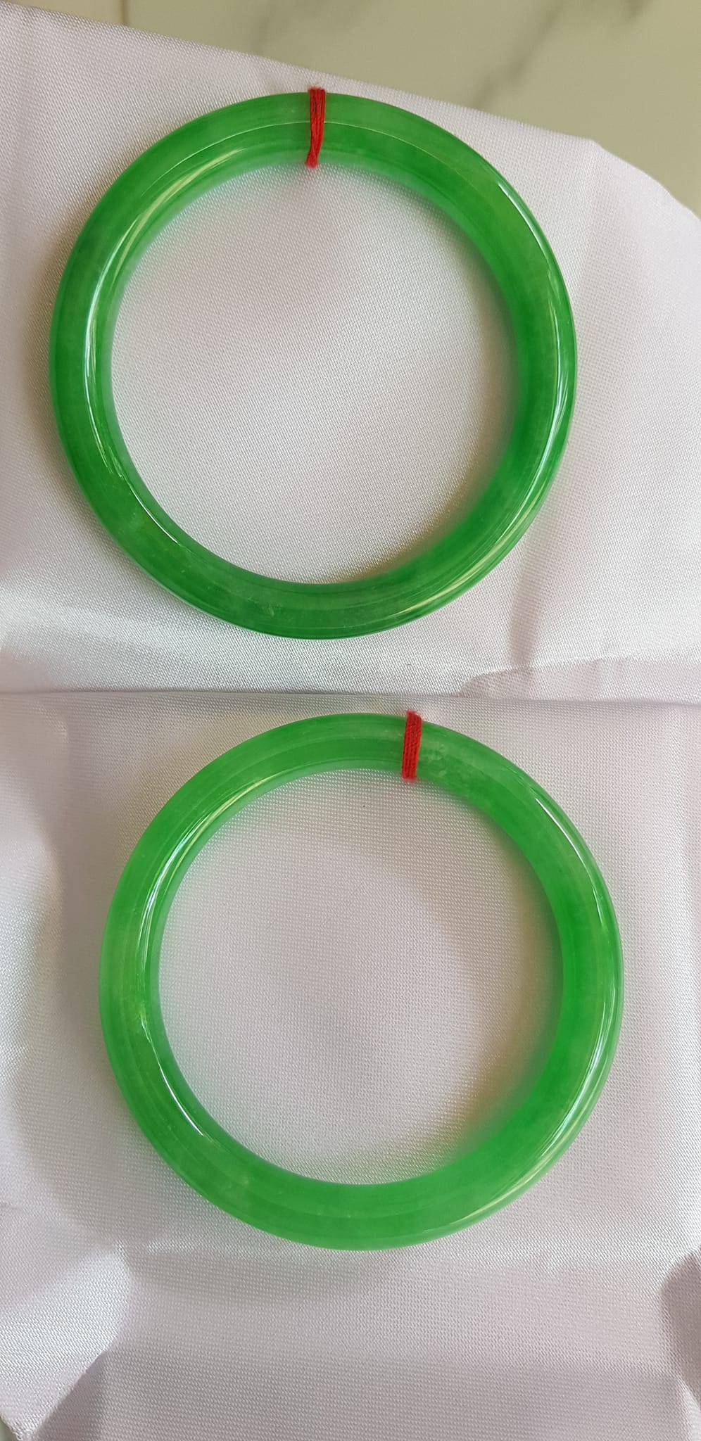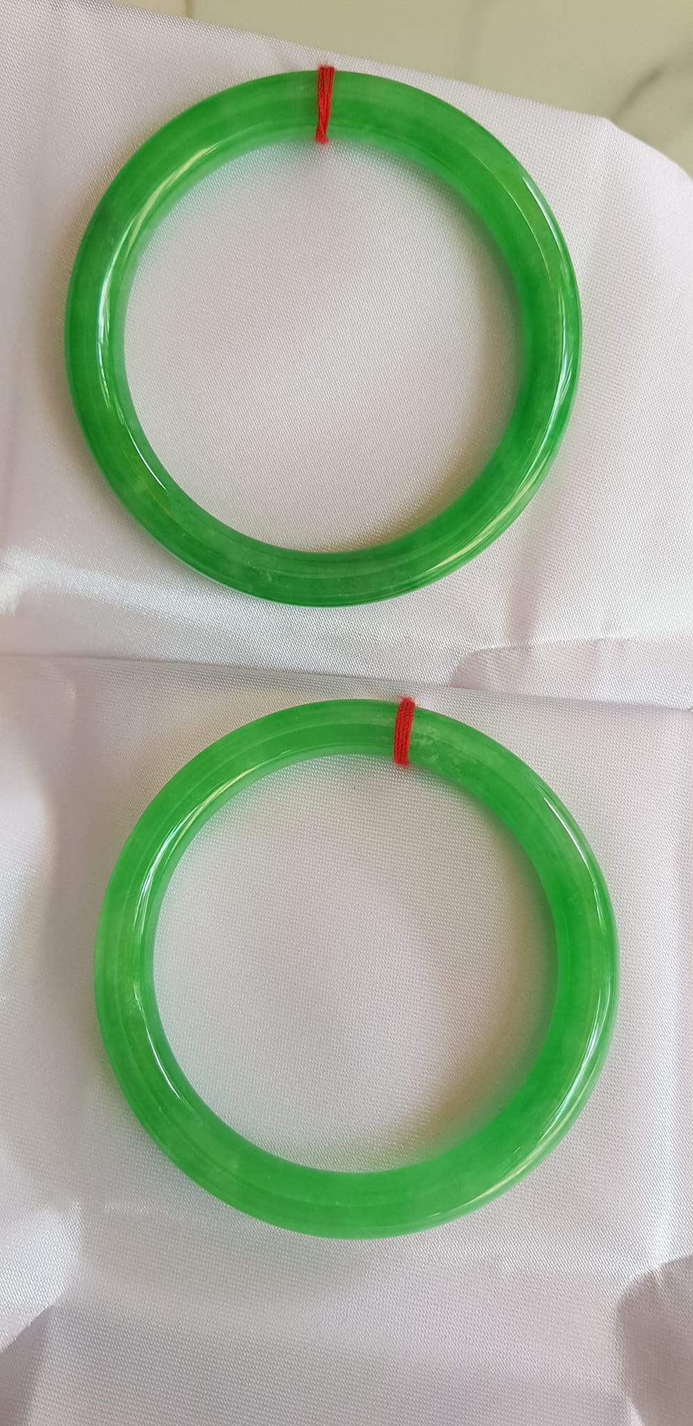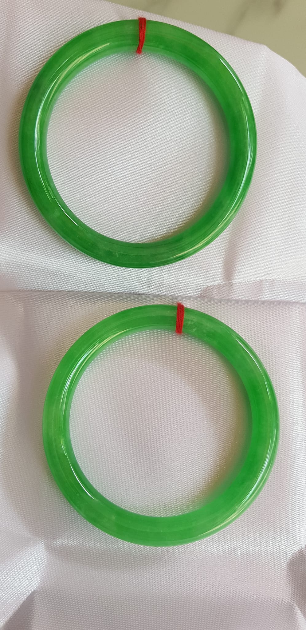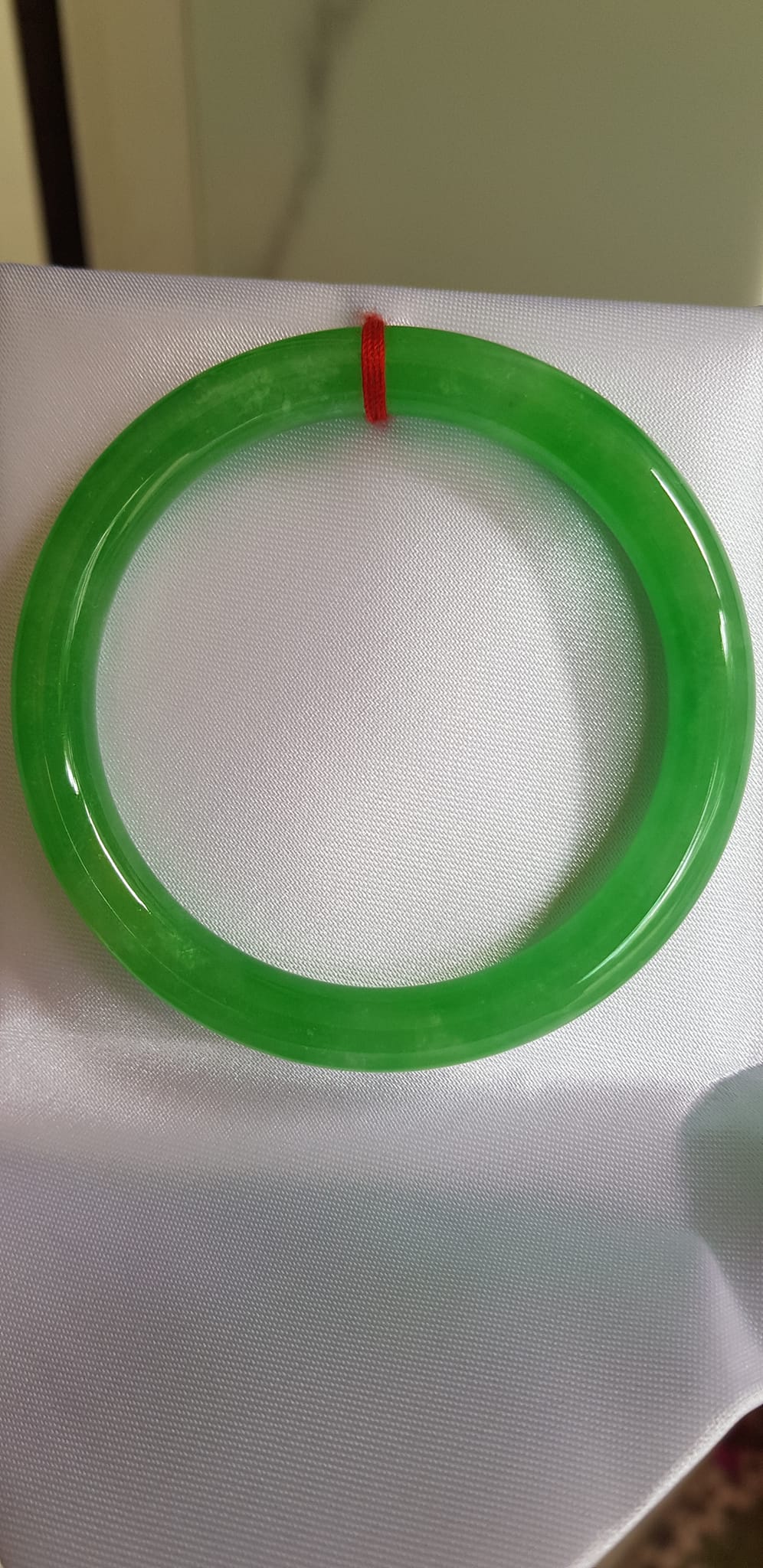 Vòng cẩm thạch Đ Lý 52mm x dầy 7,8mm màu xanh lá tươi hợp Nữ mệnh Mộc mệnh Hỏa 52kg - 56kg đeo ạ