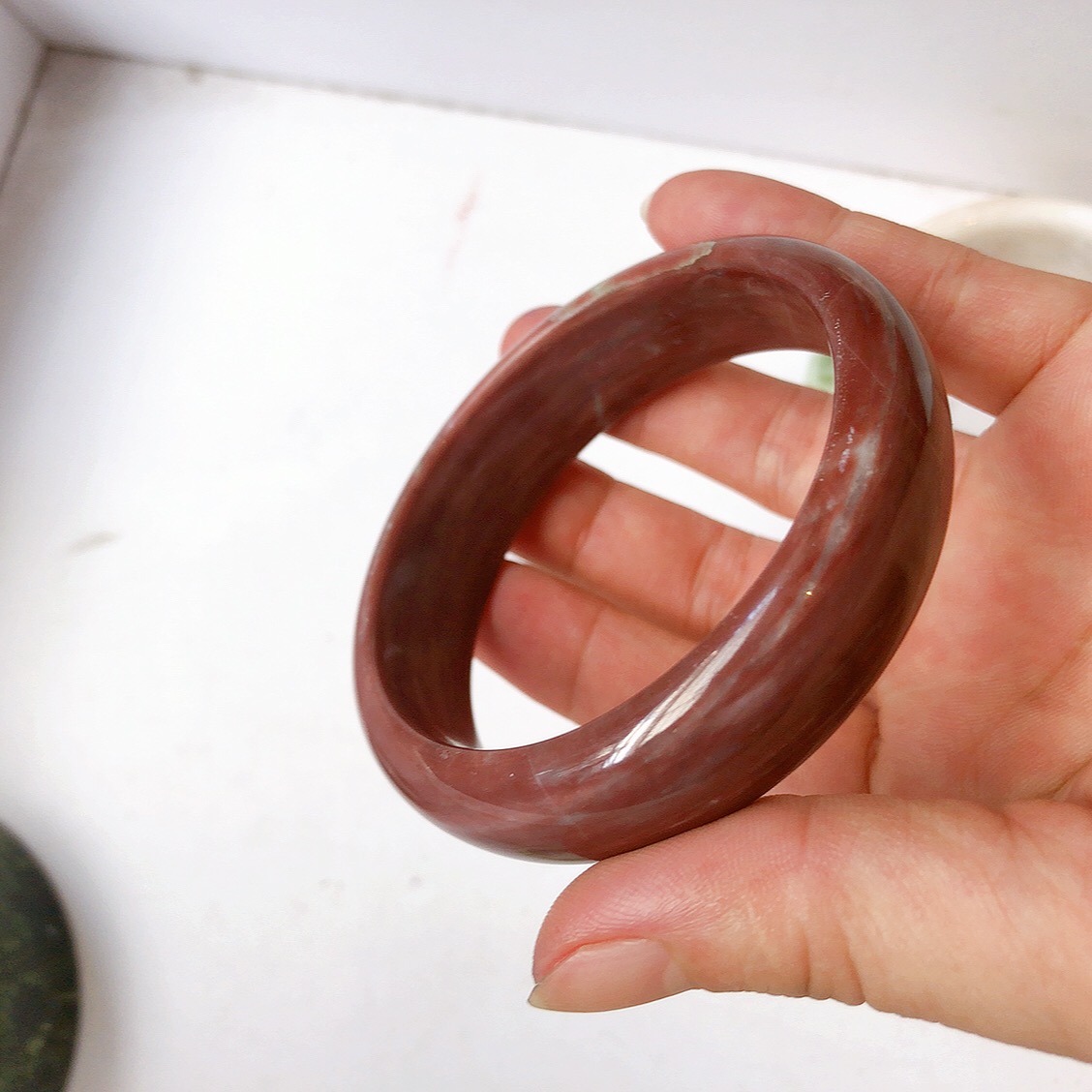 1. Tên gọi: Vòng tay ngọc màu hồng phấn siêu độc lạ, ngọc của VN, mới khai thác được, nên chế tác luôn và được khách đón nhận vì màu đá tự nhiên rất nhẹ