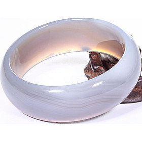Vòng nguyên khối bản cọng tròn mỏng đá mã não xám - Hợp Mệnh Kim & Thủy [ Ngọc Quý ]