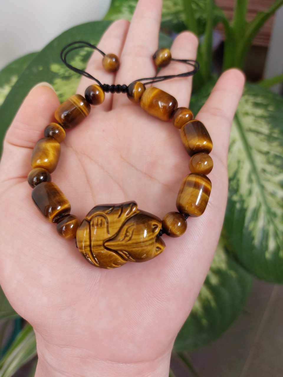 Vòng tay đá mắt hổ lu thống vàng nâu gắn hồ ly phong thủy cho Nữ công sở làm trang sức