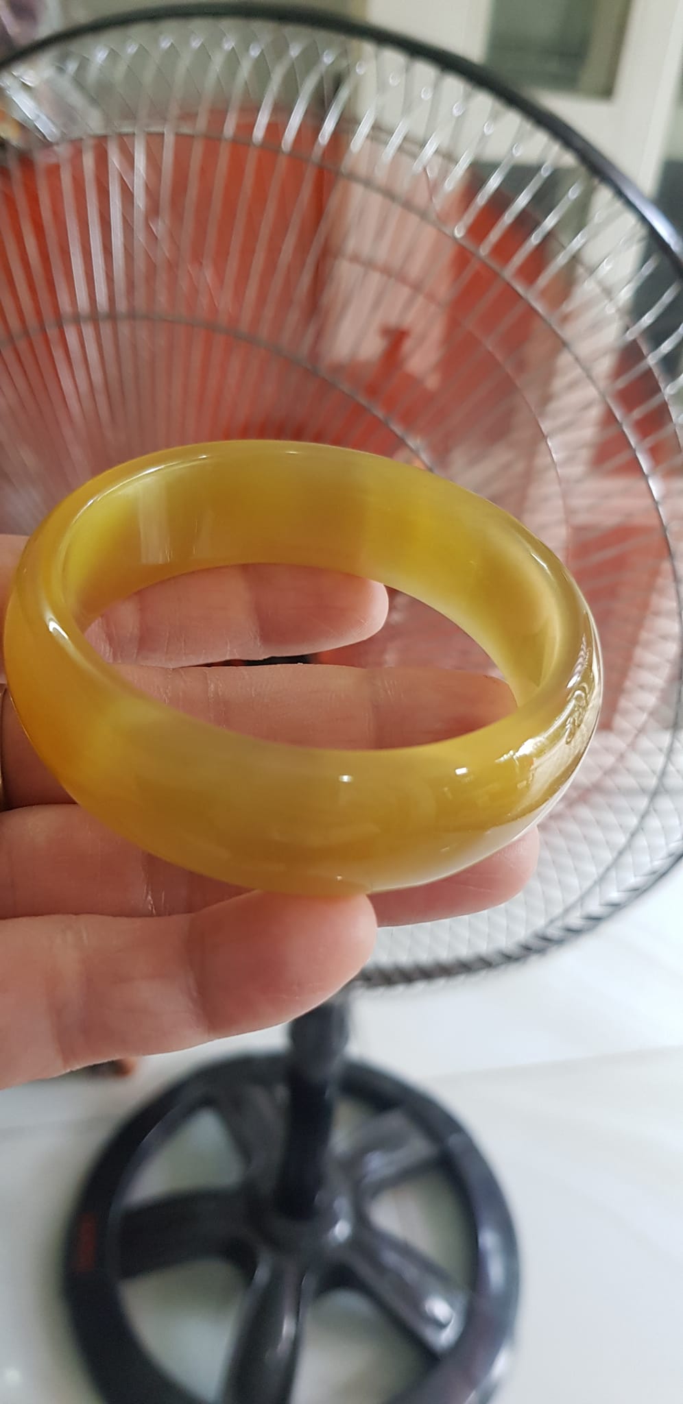 Vòng tay đá mắt mèo Vàng nhẹ Ni 56mm x Cao 19mm x dầy 7mm Nữ 52kg - 59kg đeo màu nhẹ xinh tươi đẹp rẻ lắm Chuẩn hợp nữ mệnh thổ mệnh kim mệnh