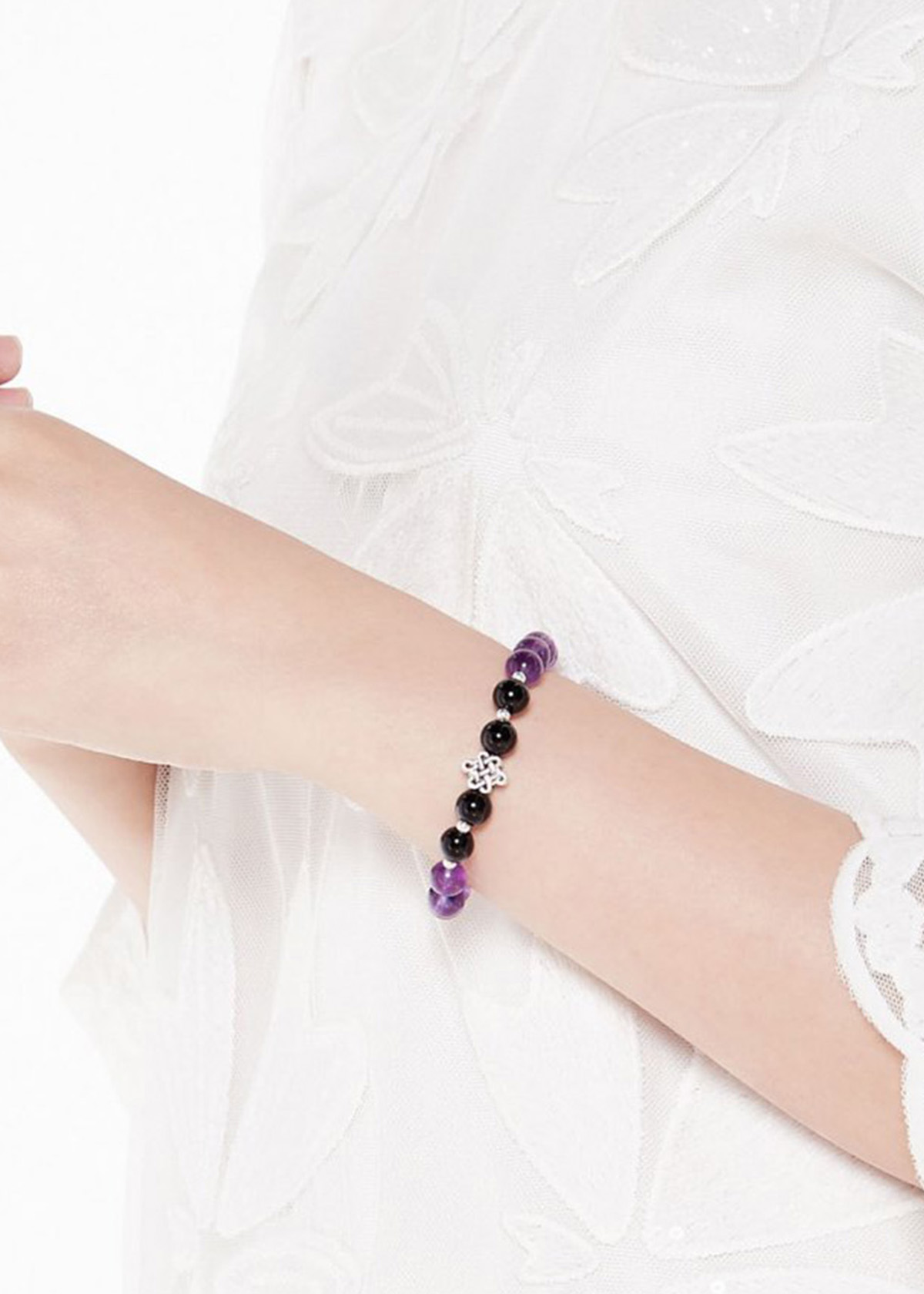 Vòng Tay Đá Thiên Nhiên Phối Charm Kết Đồng Tâm Bạc