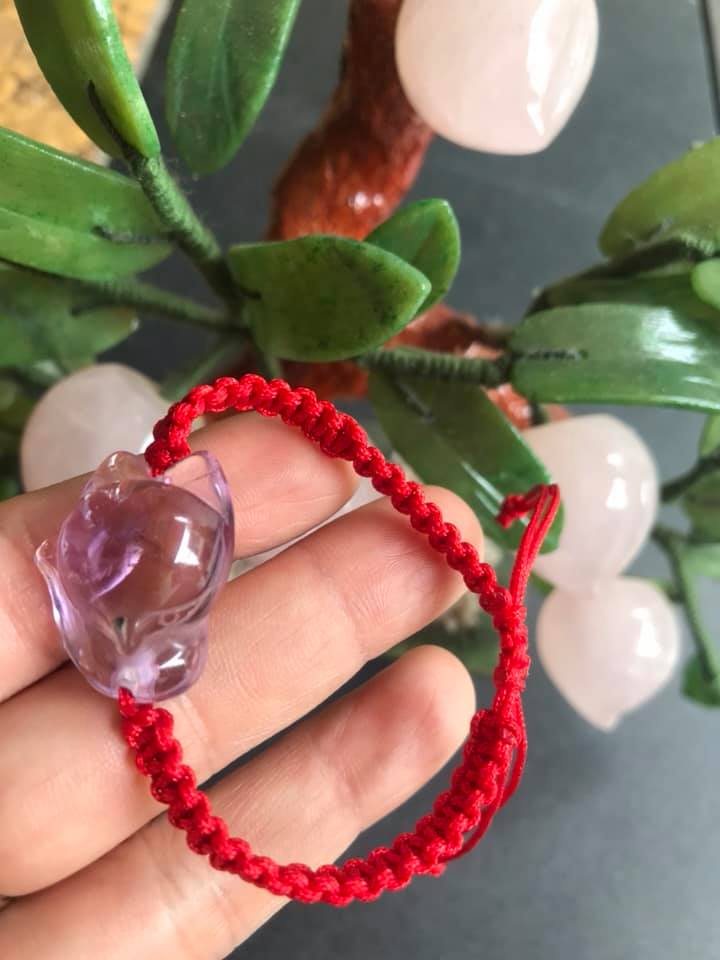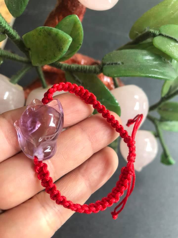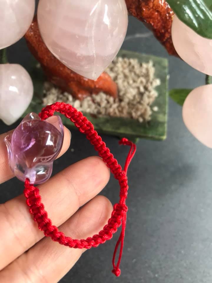 ✨VÒNG TAY HANDMADE HỒ LY MAY MẮN TÀI LỘC VỀ TÌNH DUYÊN CÔNG DANH ĐÁ THẠCH ANH TÍM TỰ NHIÊN DÂY ĐỎ HỢP NỮ MỆNH HỎA MỆNH THỔ Ạ