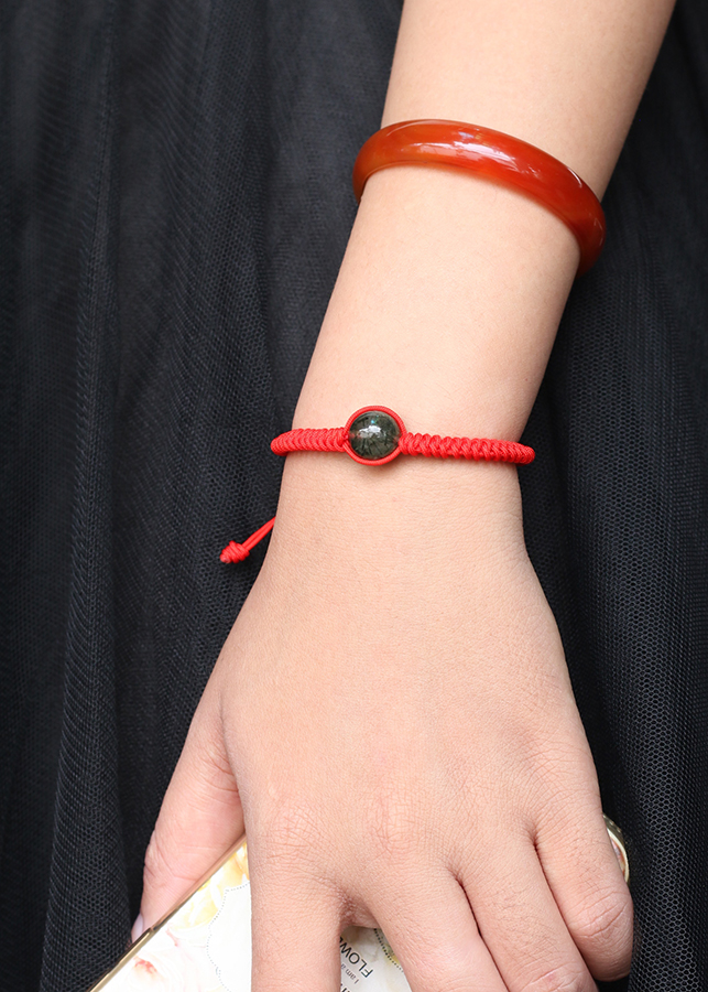 VÒNG TAY THẮT DÂY ĐEN 1 VIÊN ĐÁ THIÊN NHIÊN - Chất liệu gia công từ đá thiên nhiên, không qua xử lý mang lại lợi ích cho sức khỏe, may mắn trong phong thủy cho người