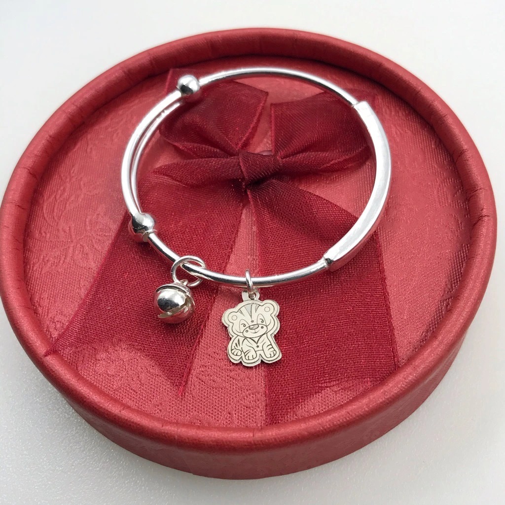 ✨Vòng Tay Lắc Tay Cho Bé Bạc S99 Chuông Mix Bé Hổ Free Size BẠC HIỂU MINH .