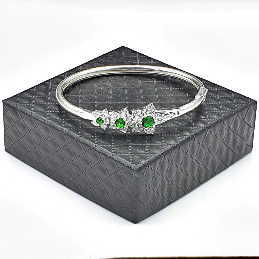 Vòng , Lắc Tay Nữ BẠC HIỂU MINH LTU315 Dạng Kiềng Hoa Đá Xanh Lấp Lánh