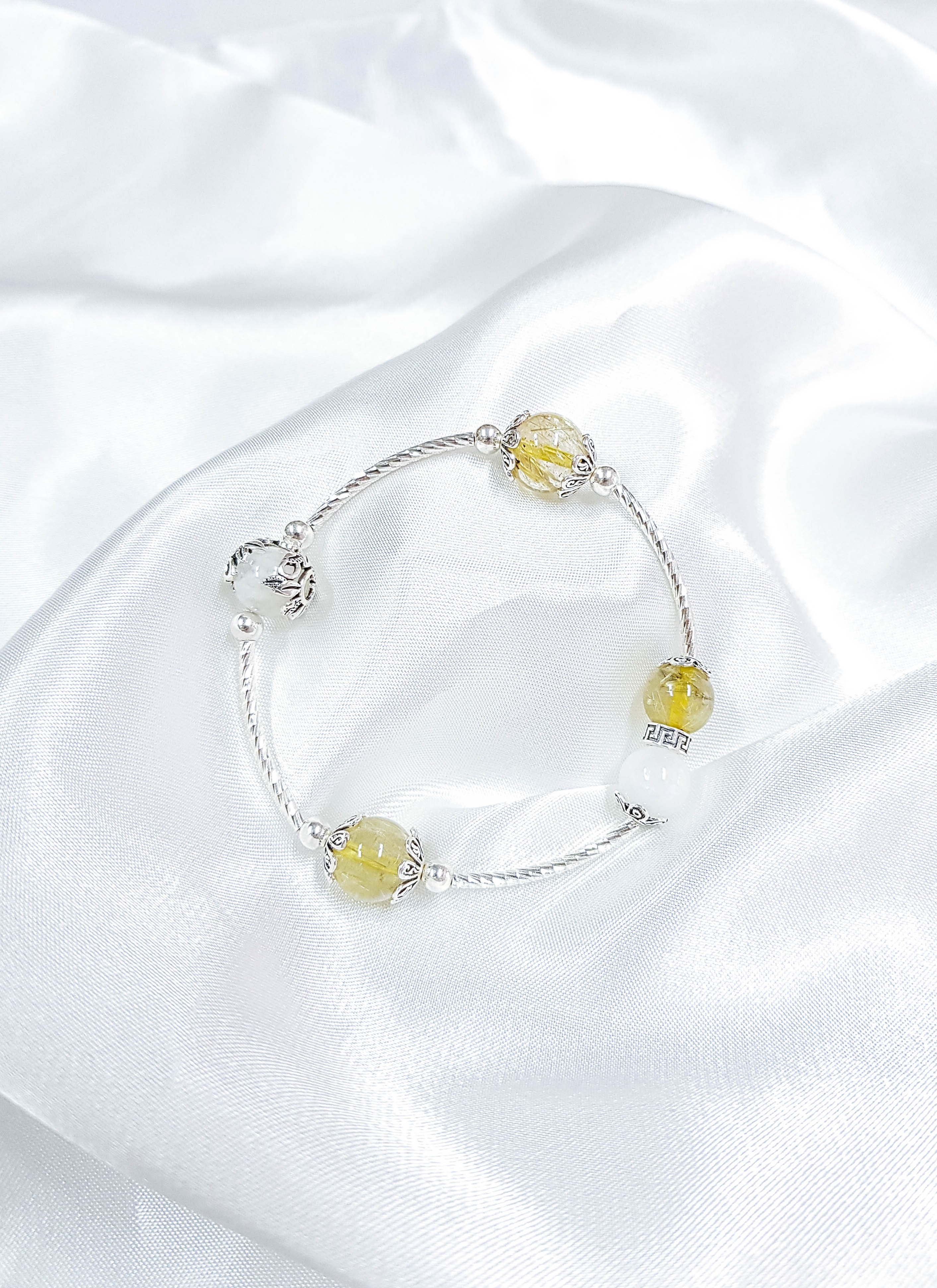Vòng tay 2line đá thạch anh tóc vàng & ưu linh trắng phối charm | Ngọc Quý Gemstones |