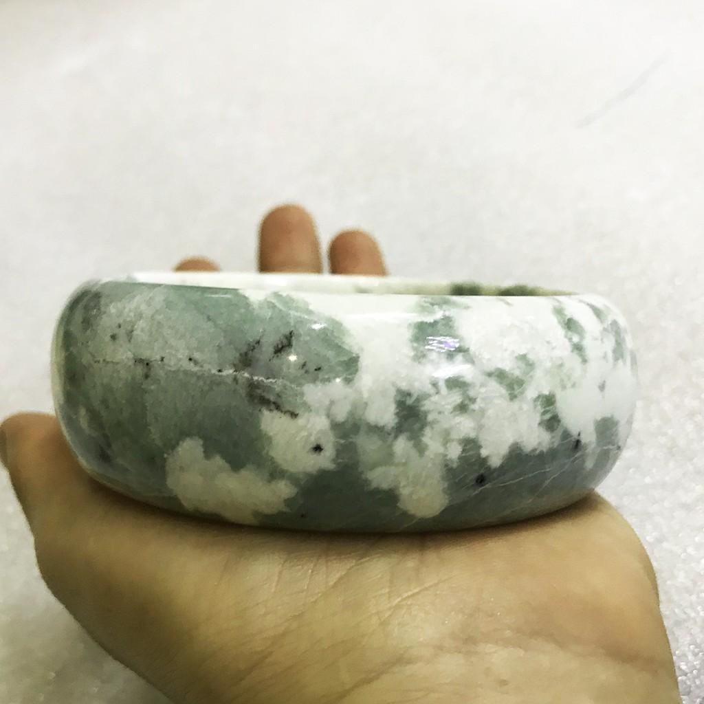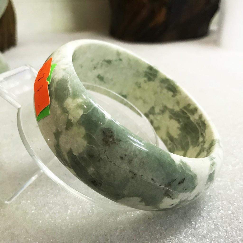 Đặc điểm của Vòng Tay Serpentine Trắng Xanh - Làm từ ngọc serpentine tự nhiên. - Thiết kế đẹp mắt, nguyên khối bản dẹt. - Serpentine thường có màu xanh lục, nhưng nó cũng có thể thay