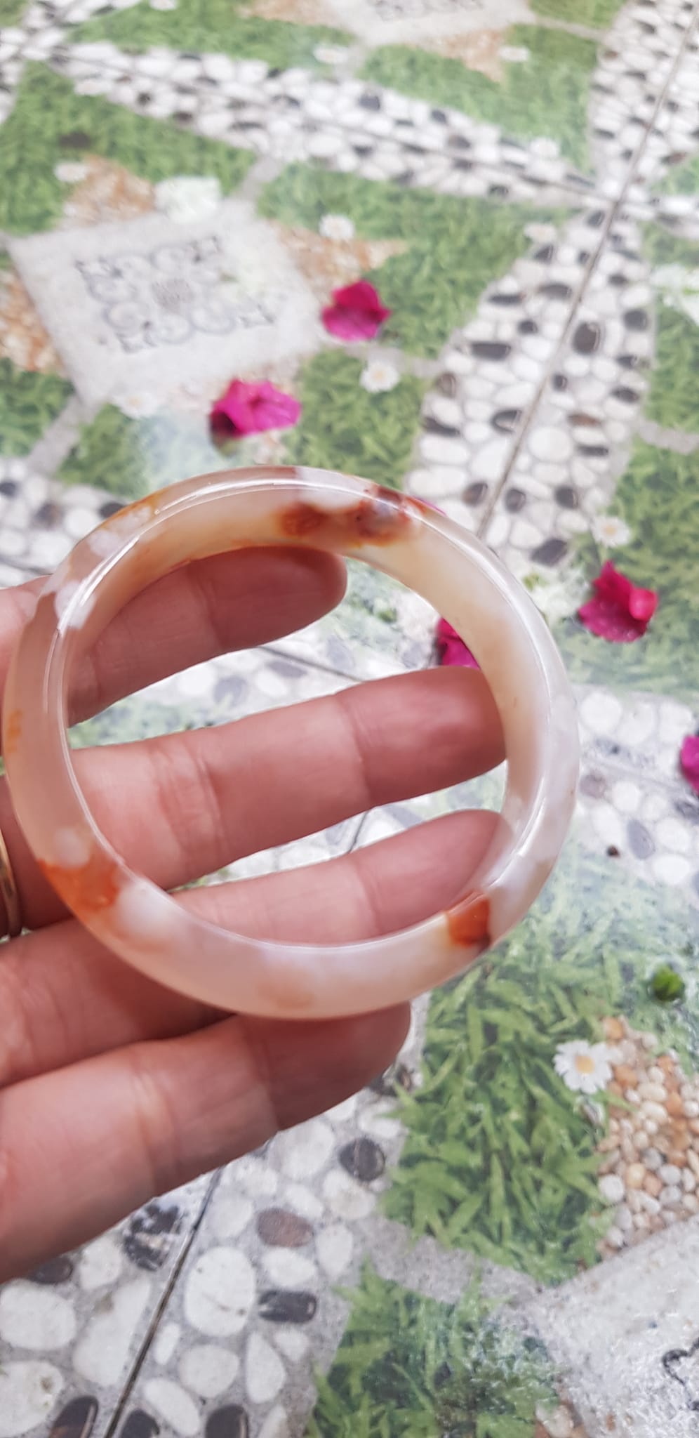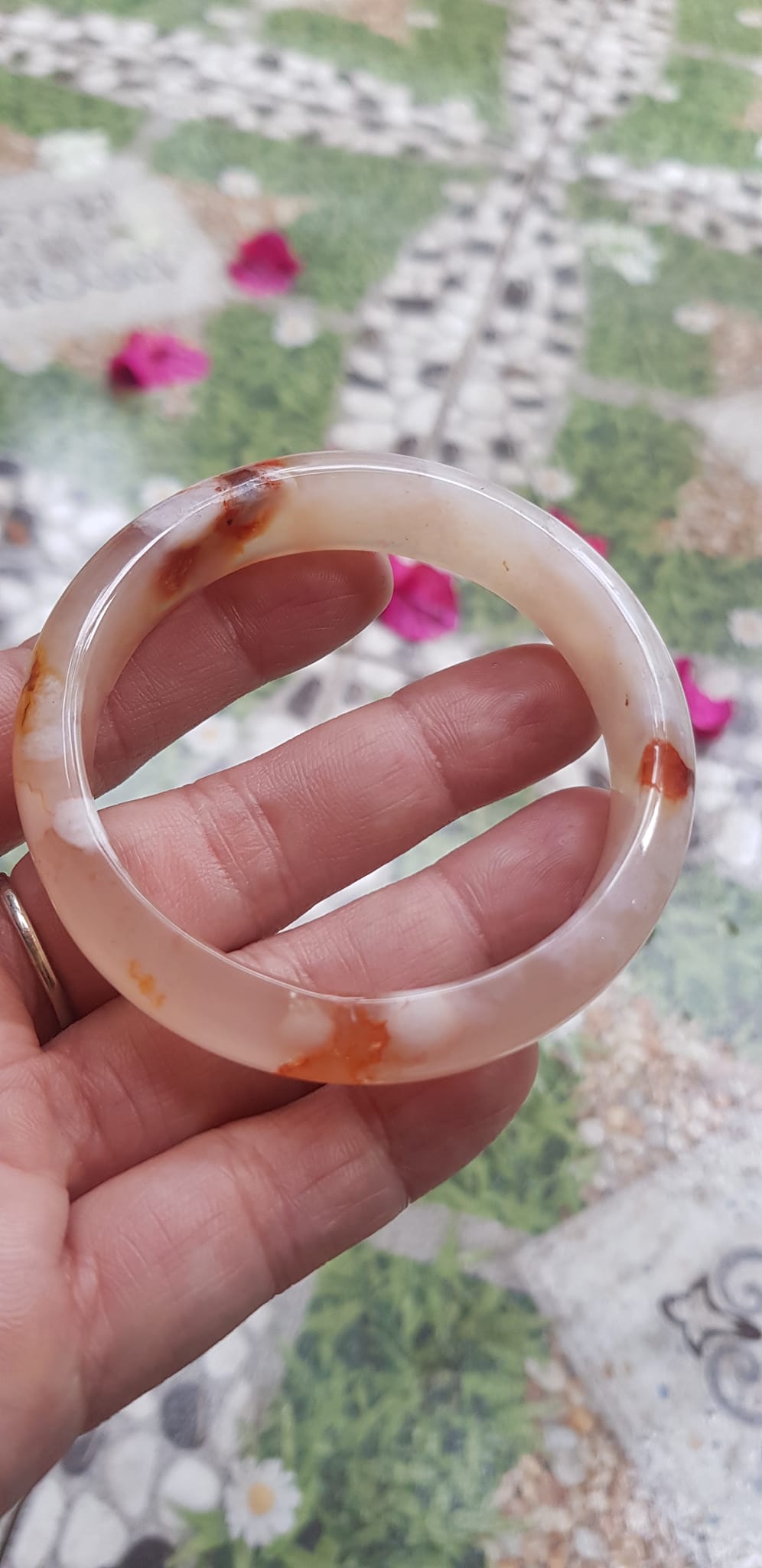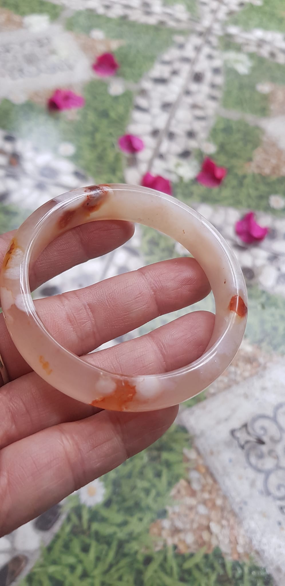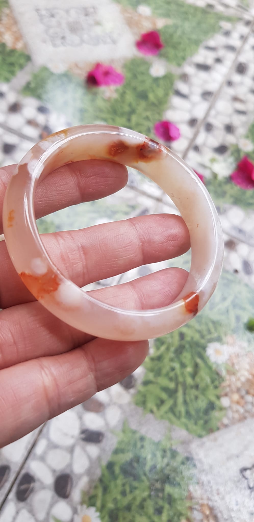 Vòng đeo tay Nữ Bản Hẹ Đá Mã Não Hoa Rau Câu Vòng tay Ni 53mm x Cao 10mm x dầy 7mm bóng đẹp Nữ 50kg - 53kg đeo xinh màu hoa nhẹ nhàng rất