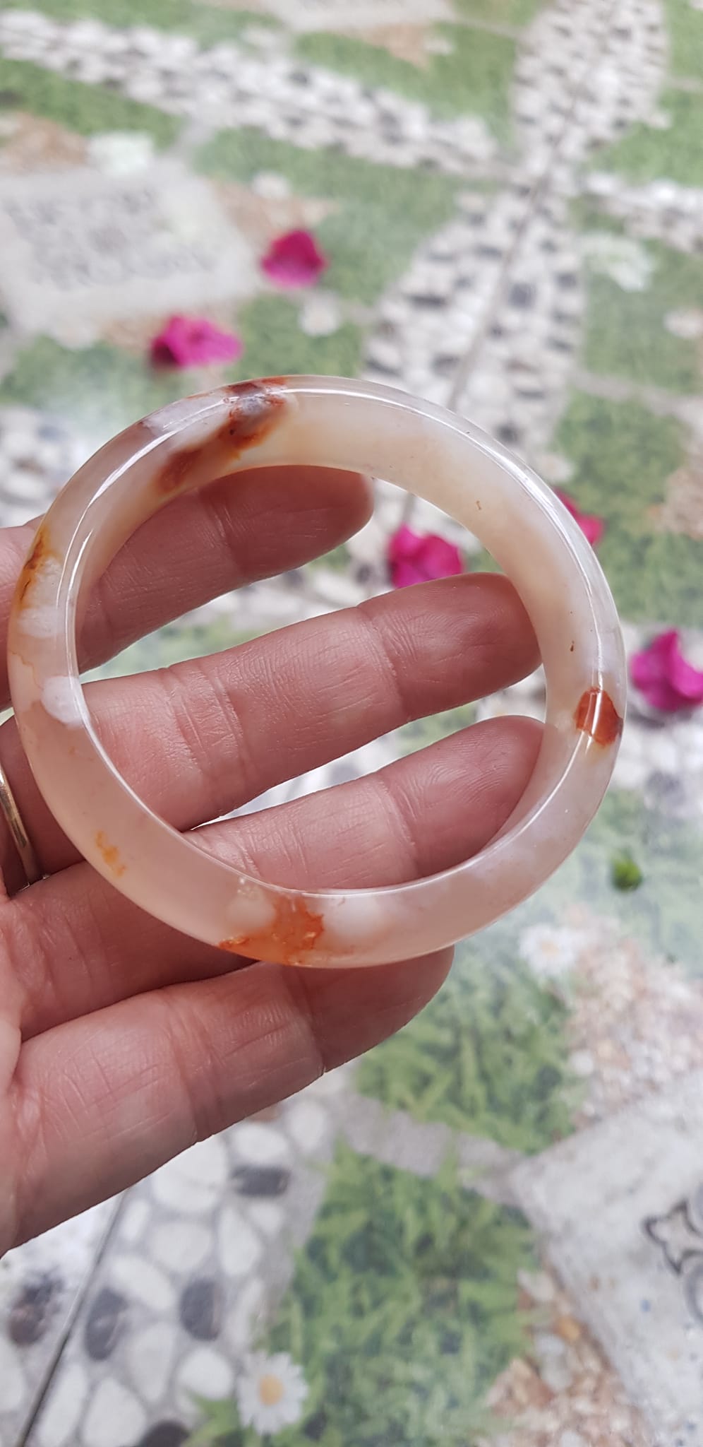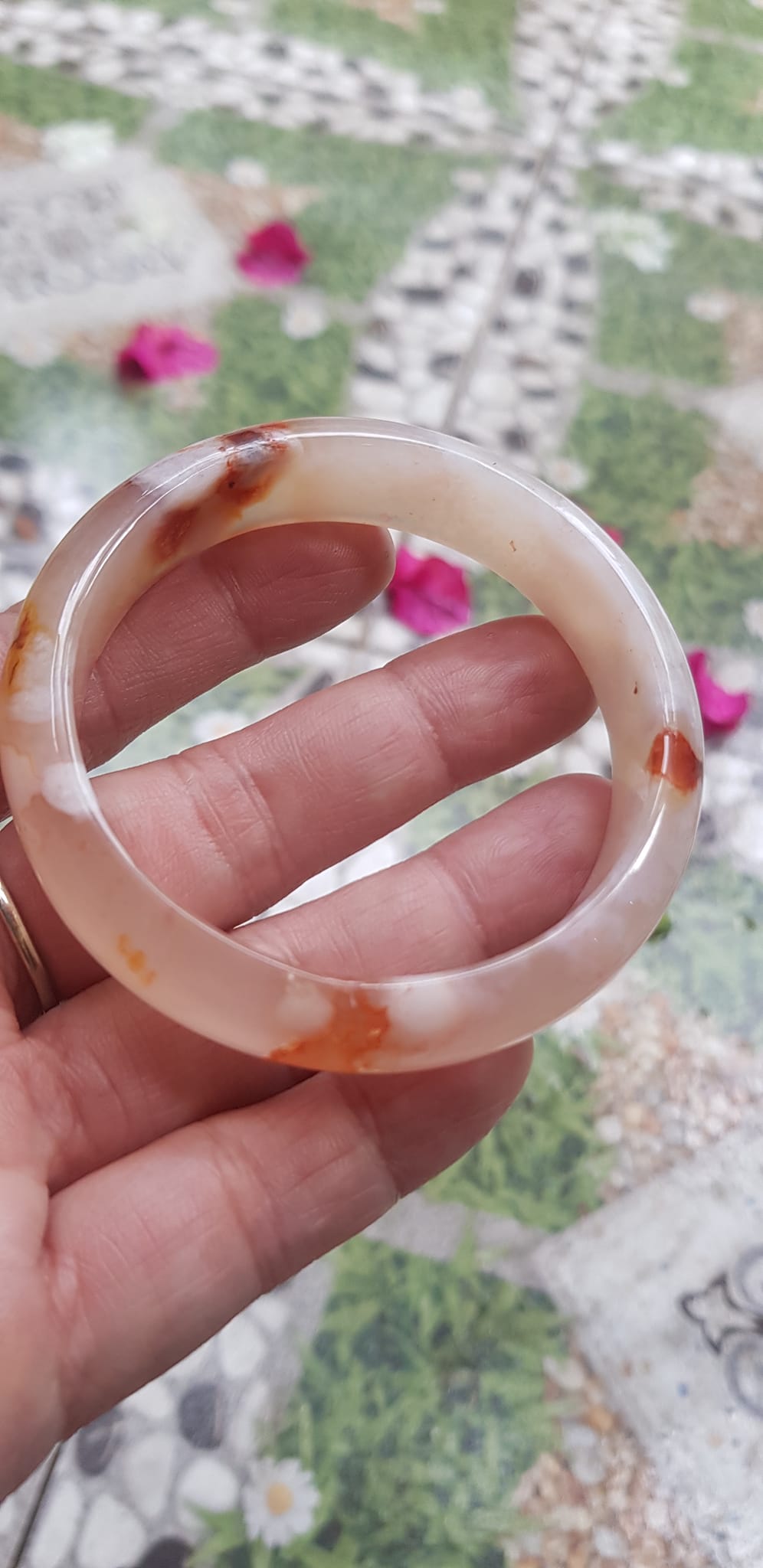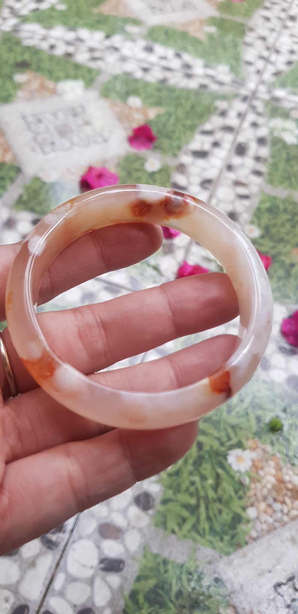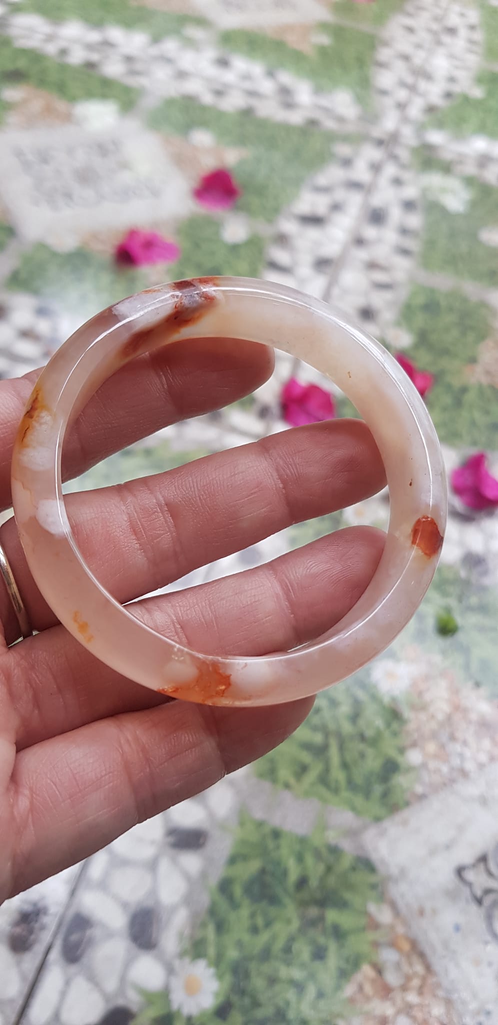 Vòng đeo tay Nữ Bản Hẹ Đá Mã Não Hoa Rau Câu Vòng tay Ni 53mm x Cao 10mm x dầy 7mm bóng đẹp Nữ 50kg - 53kg đeo xinh màu hoa nhẹ nhàng rất