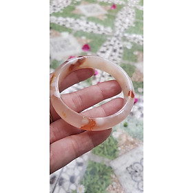 Vòng tay Nữ Bản Hẹ Mới Đá Mã Não Bông Tuyết Hồng nhẹ trắng trong bóng đẹp Ni 53mm 52kg-55kg SUNNY Q8