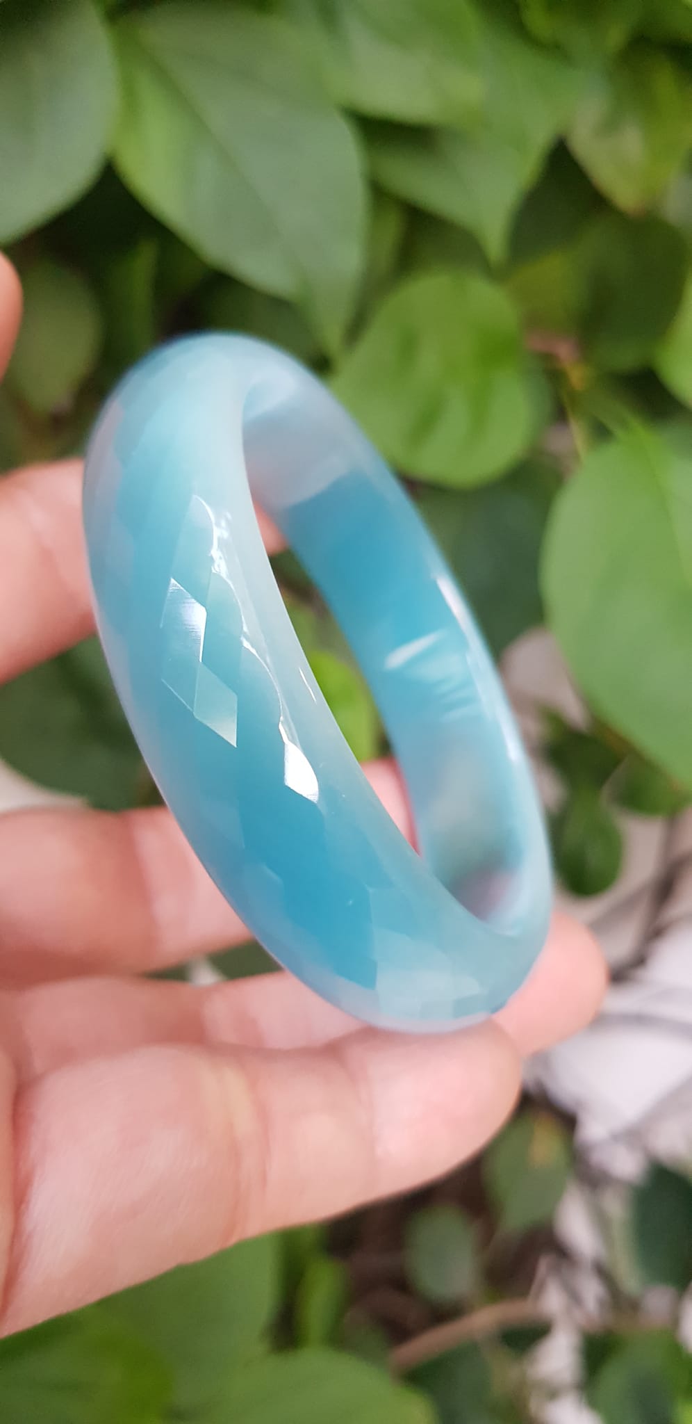 Vòng tay nữ đá mắt mèo Xanh dương nhẹ bản hẹ mới Ni 53mm x cao 12mm x dầy 6,5mm nữ 49kg - 54kg đeo